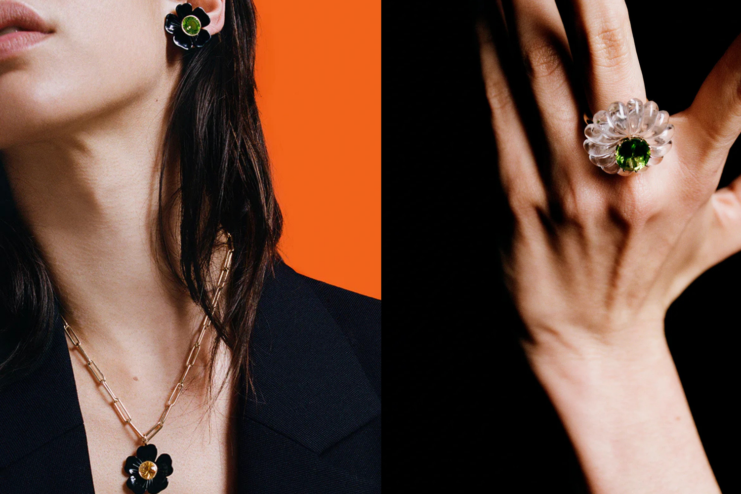 Sophie Joanne-Island Flower Studs Rose Quartz Peridot