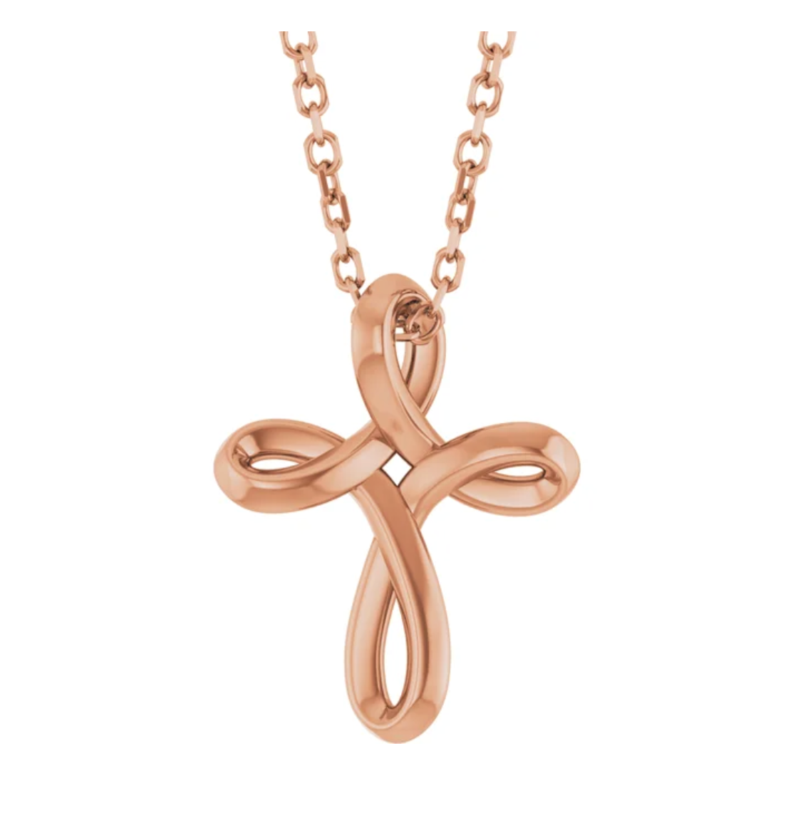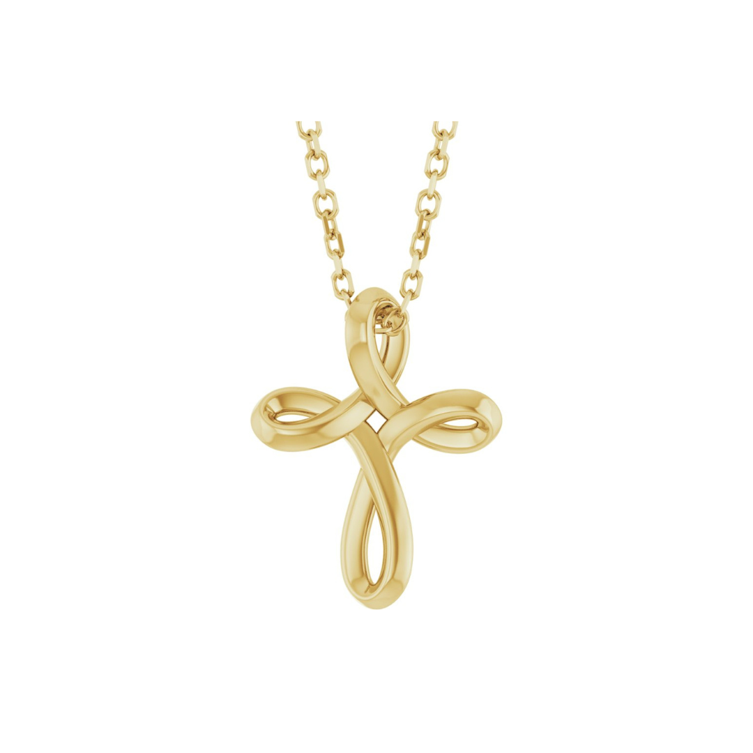 A beautiful flowing 14K Gold cross necklace. Perfect for everyday wear or special occasions, it makes a meaningful gift for yourself or a loved one.