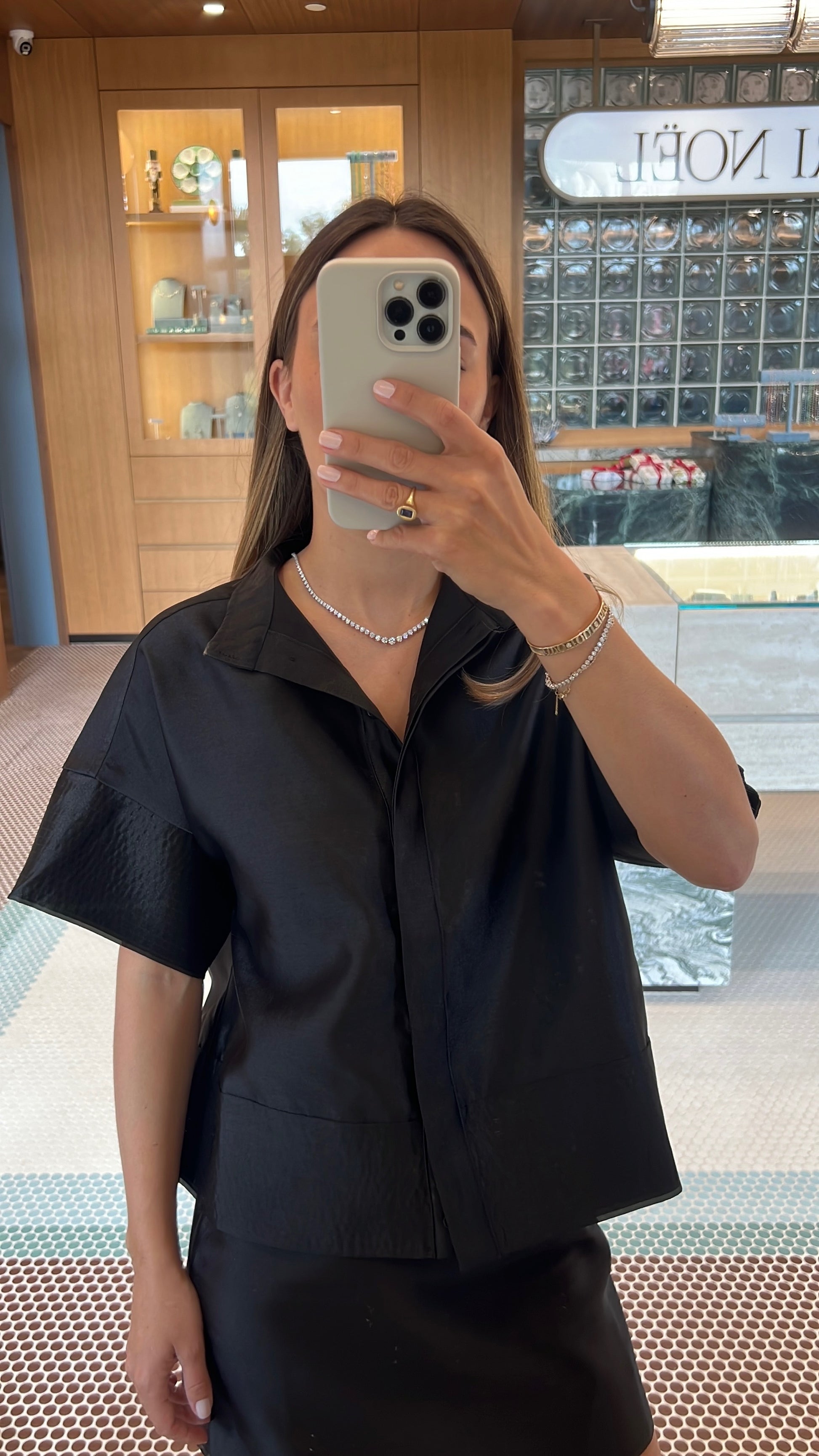A refined tennis necklace featuring graduated diamonds set in classic martini settings. Elegant and timeless, it creates a soft, effortless sparkle along the neckline.