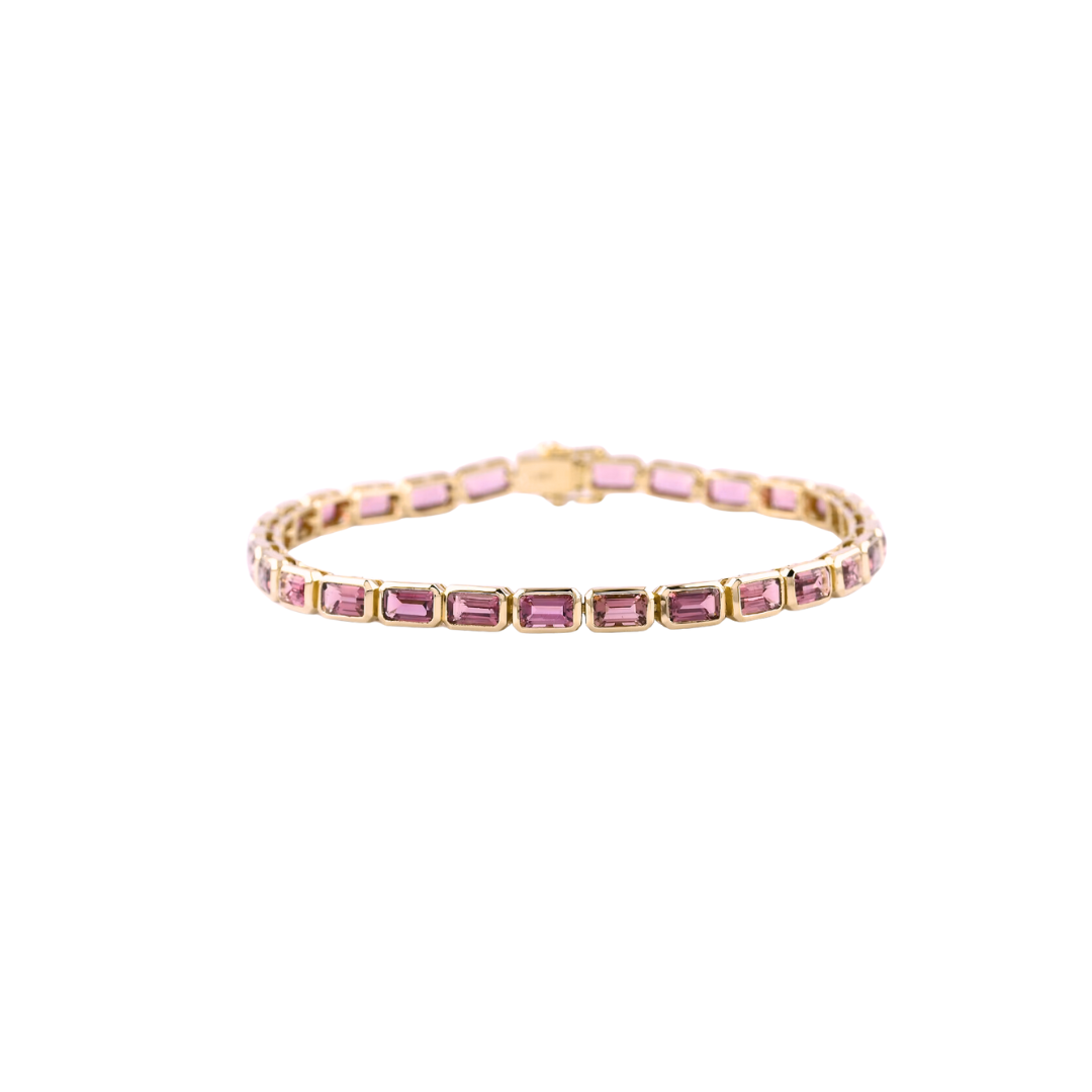 Bezel Pink Sapphire Emerald Tennis Bracelet
