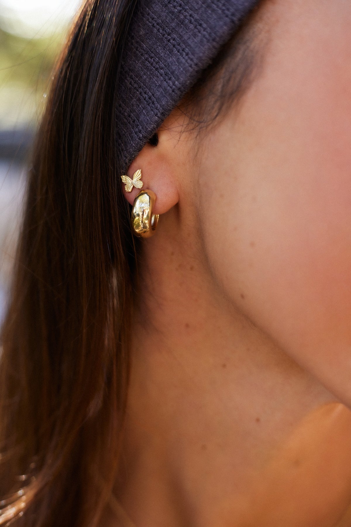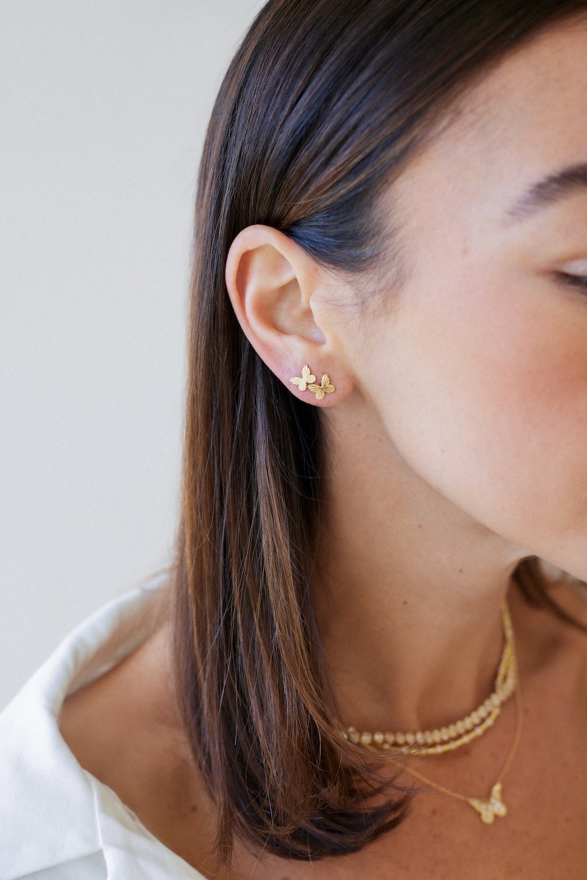 A sweet addition to your jewelry collection. Our fluted butterfly stud earrings in 14K gold will become a new staple in your ear stack.