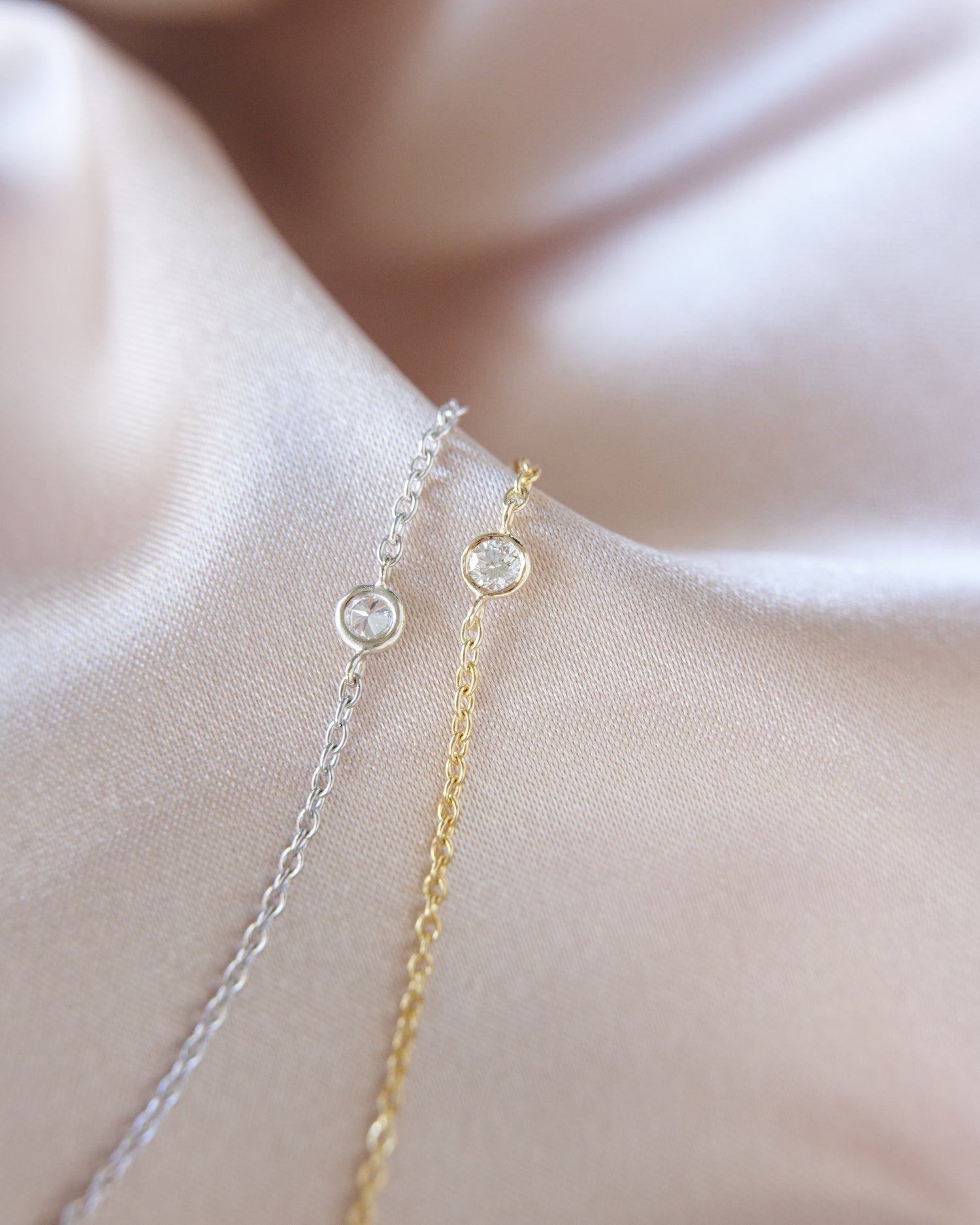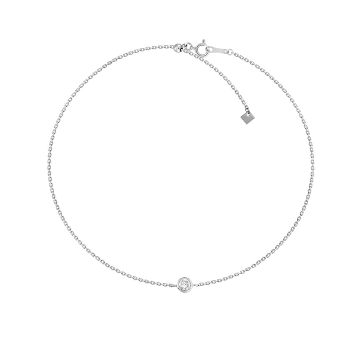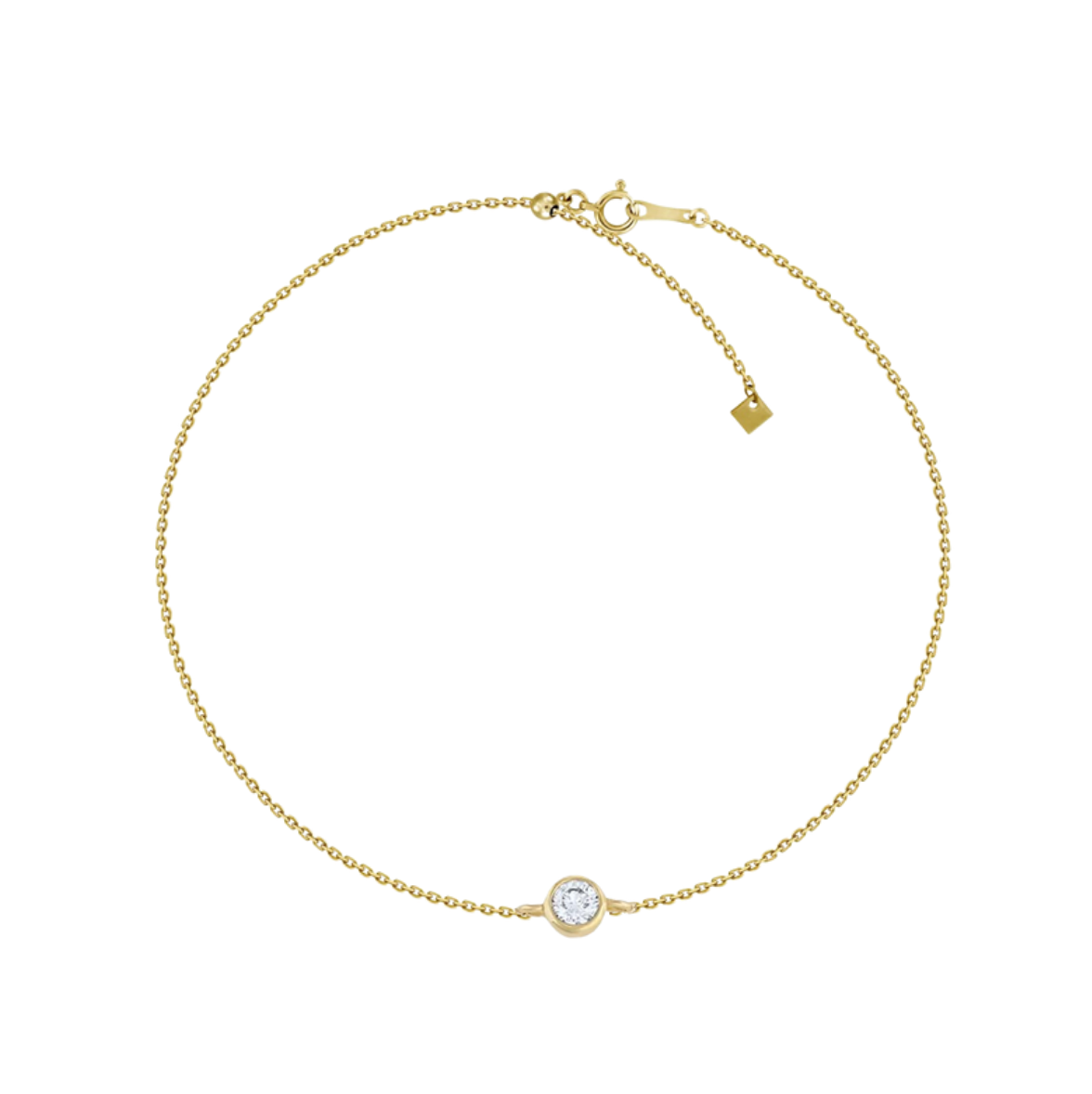 Beautifully handcrafted small diamond in a 18k solid gold small bezel setting laying on a dainty cable link chain adjustable bracelet. Available in 18k yellow and white gold. Uber chic and timeless bracelet, perfect by itself or stacked.