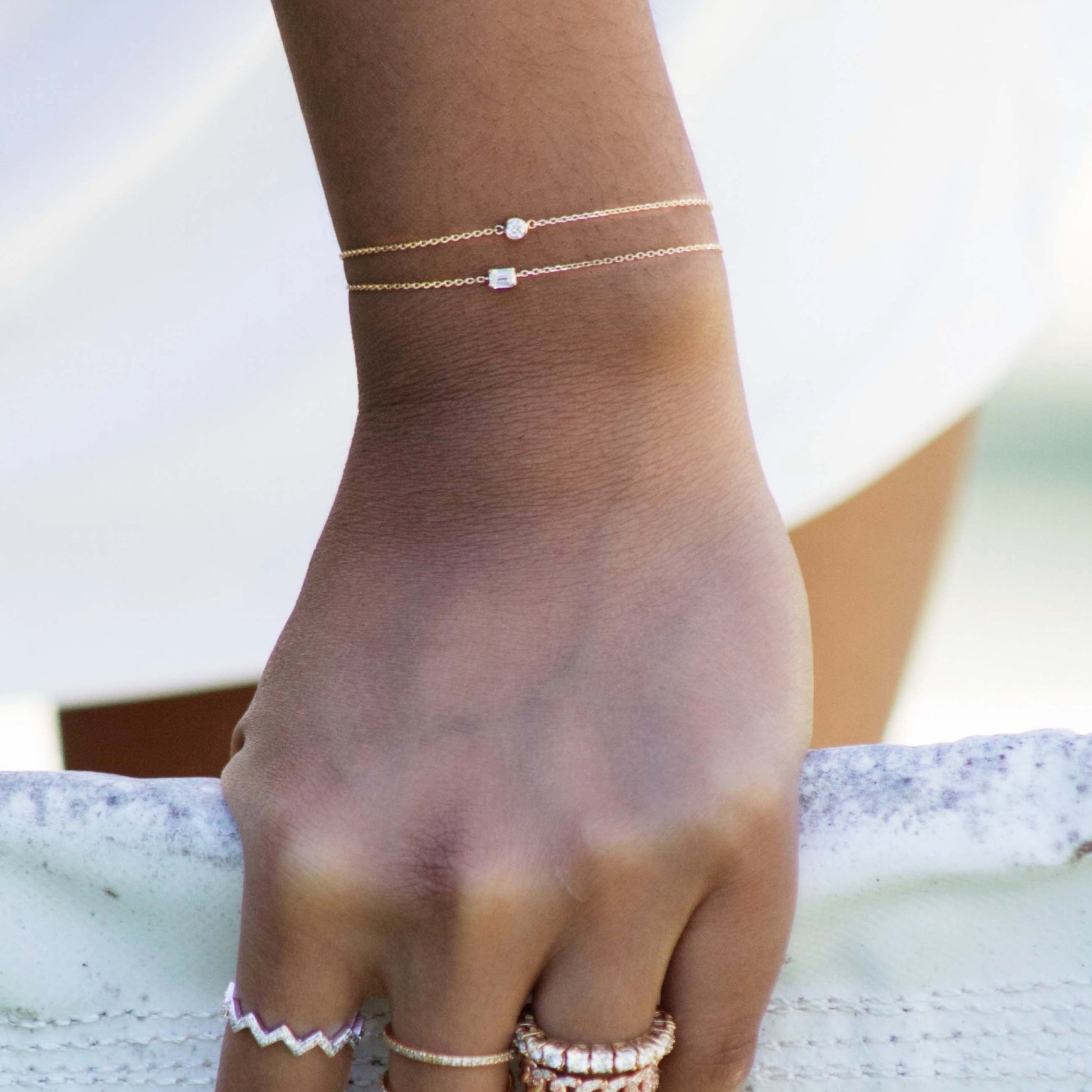 Paired here with our Emerald Diamond Bracelet: