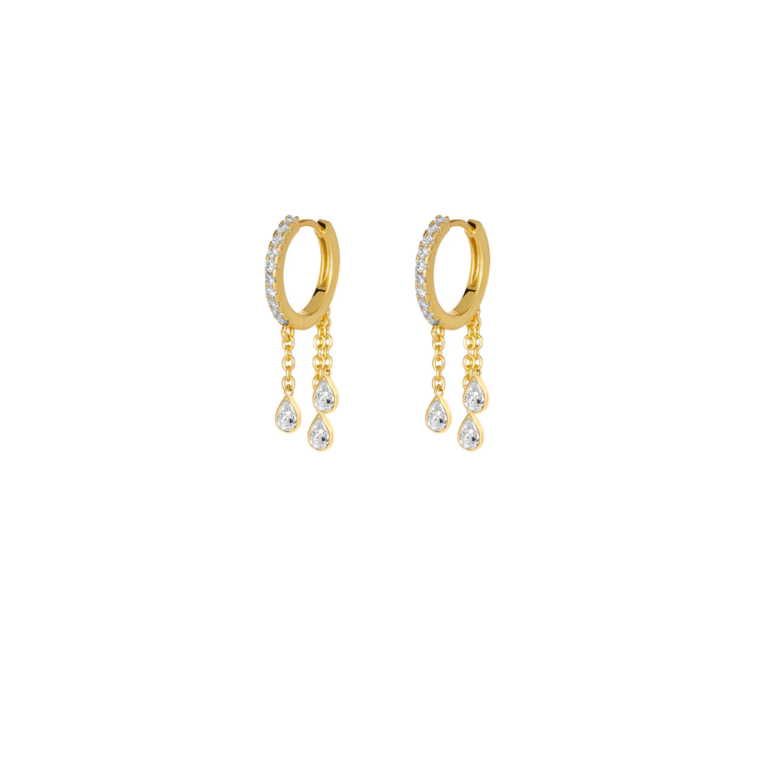 Elevate your everyday elegance with the Pear Diamond Fringe Huggies, featuring three bezel-set pear-shaped diamonds that gracefully dangle from a delicate diamond-encrusted hoop. Crafted in solid gold, these luminous earrings offer the perfect balance of sophistication and movement, catching the light with every turn. Whether worn alone or layered, they add a touch of timeless sparkle to any look