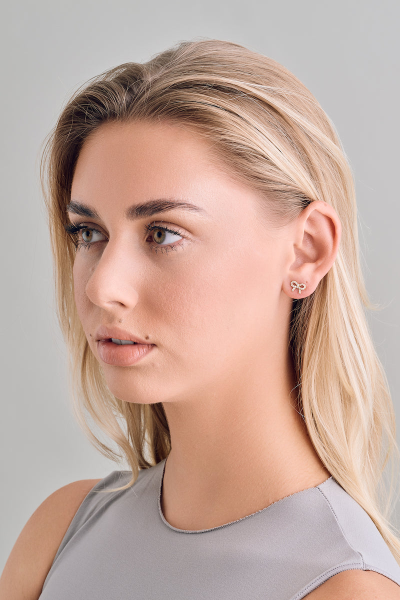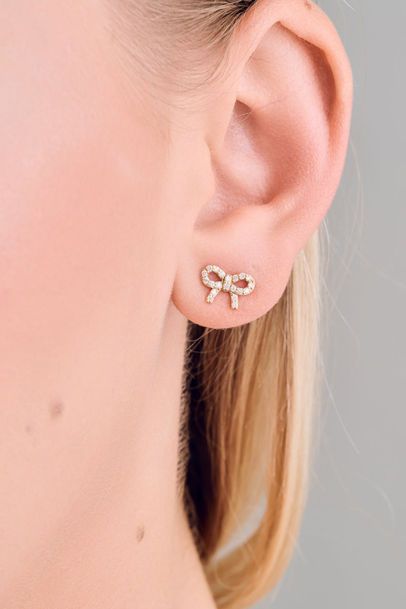Our 18K flirtatious and fun Diamond Bow Earrings are the perfect feminine accessory to any ear stack.