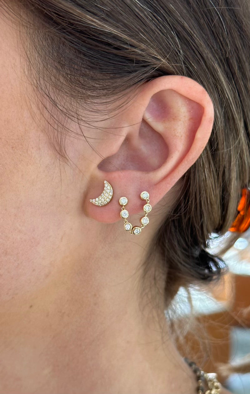 The exquisite Diamond Moon Studs are adorned with dazzling pavé diamonds. Illuminate your style with the radiant beauty of these celestial-inspired studs, perfect for adding a touch of magic to any outfit.