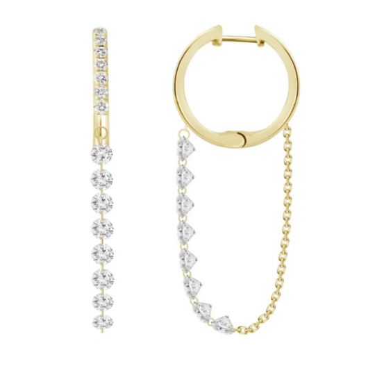 We are thrilled to release these Diamond Tennis Chain Earrings! Diamond pave hoop with high quality diamonds tethered to our signature chain for a chic, yet edgy look.