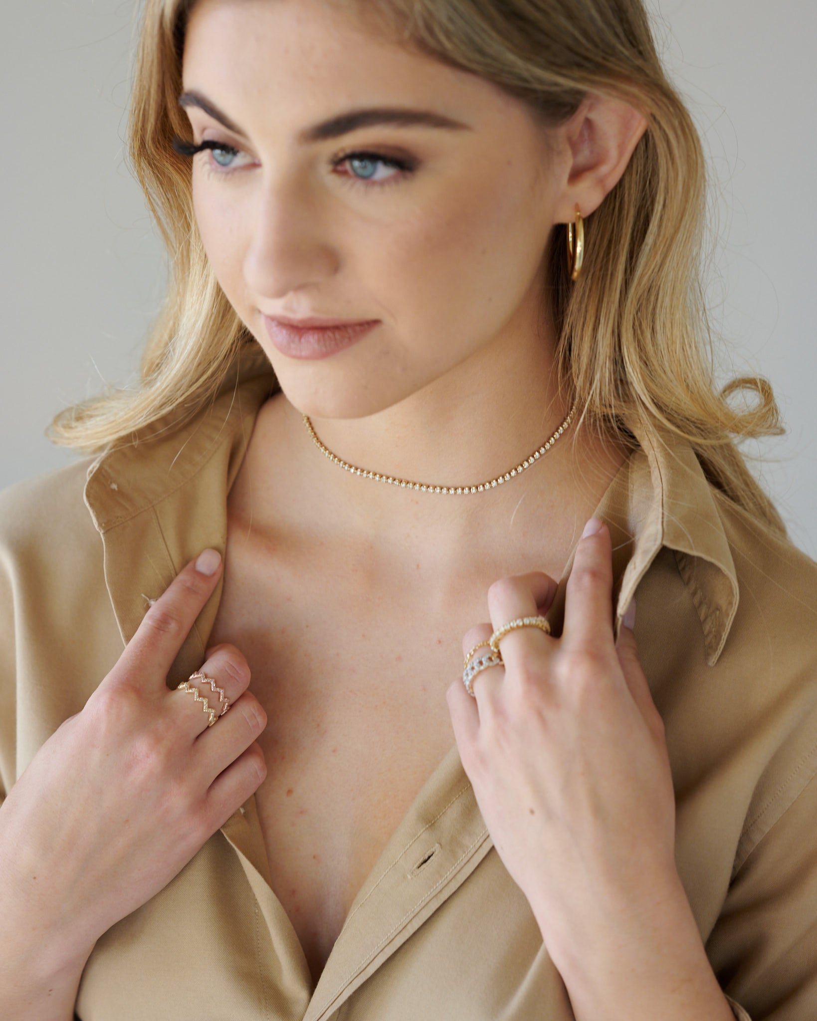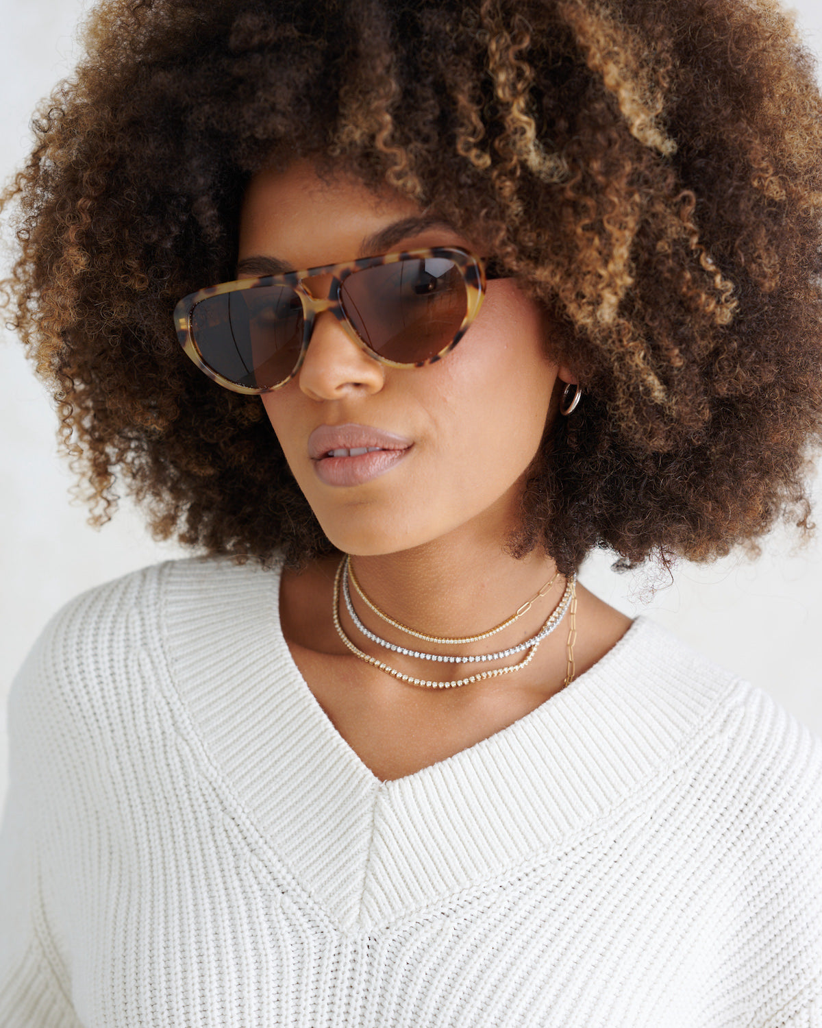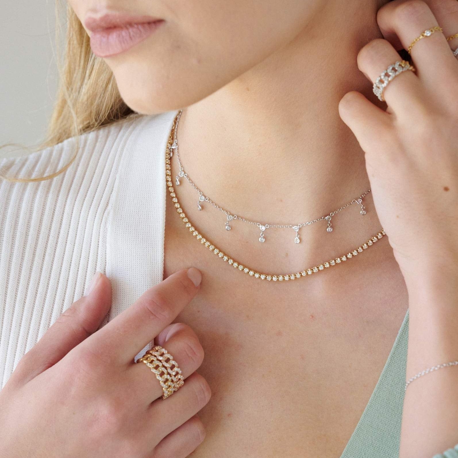- Pictured below layered with our Petite Diamond Tennis Necklace.