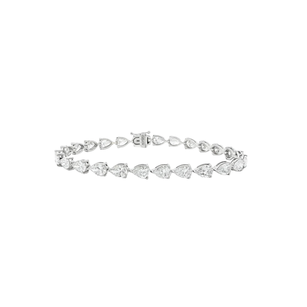 Modern tennis bracelet featuring pear-shaped diamonds set east–west for a sleek, contemporary look. A refined statement piece perfect for everyday luxury and stacking.