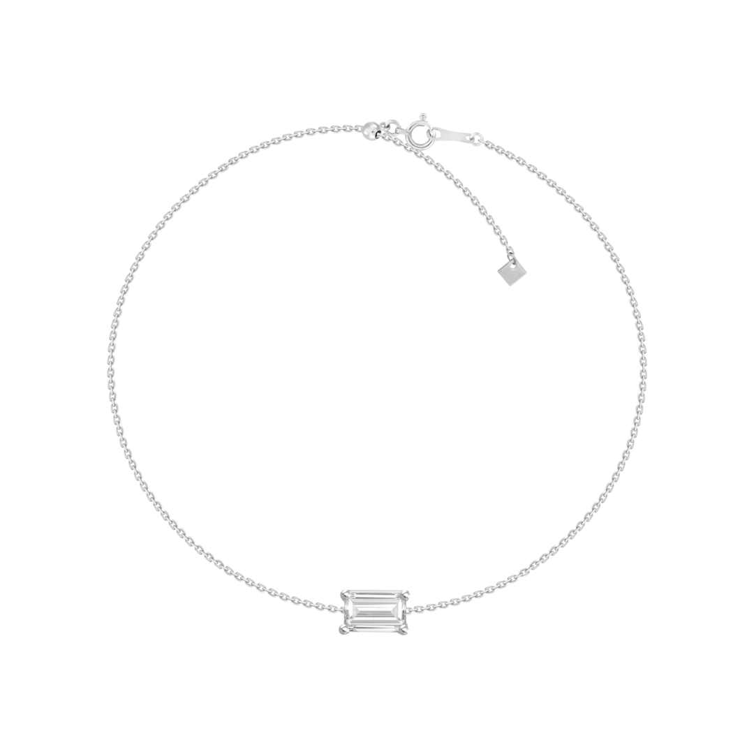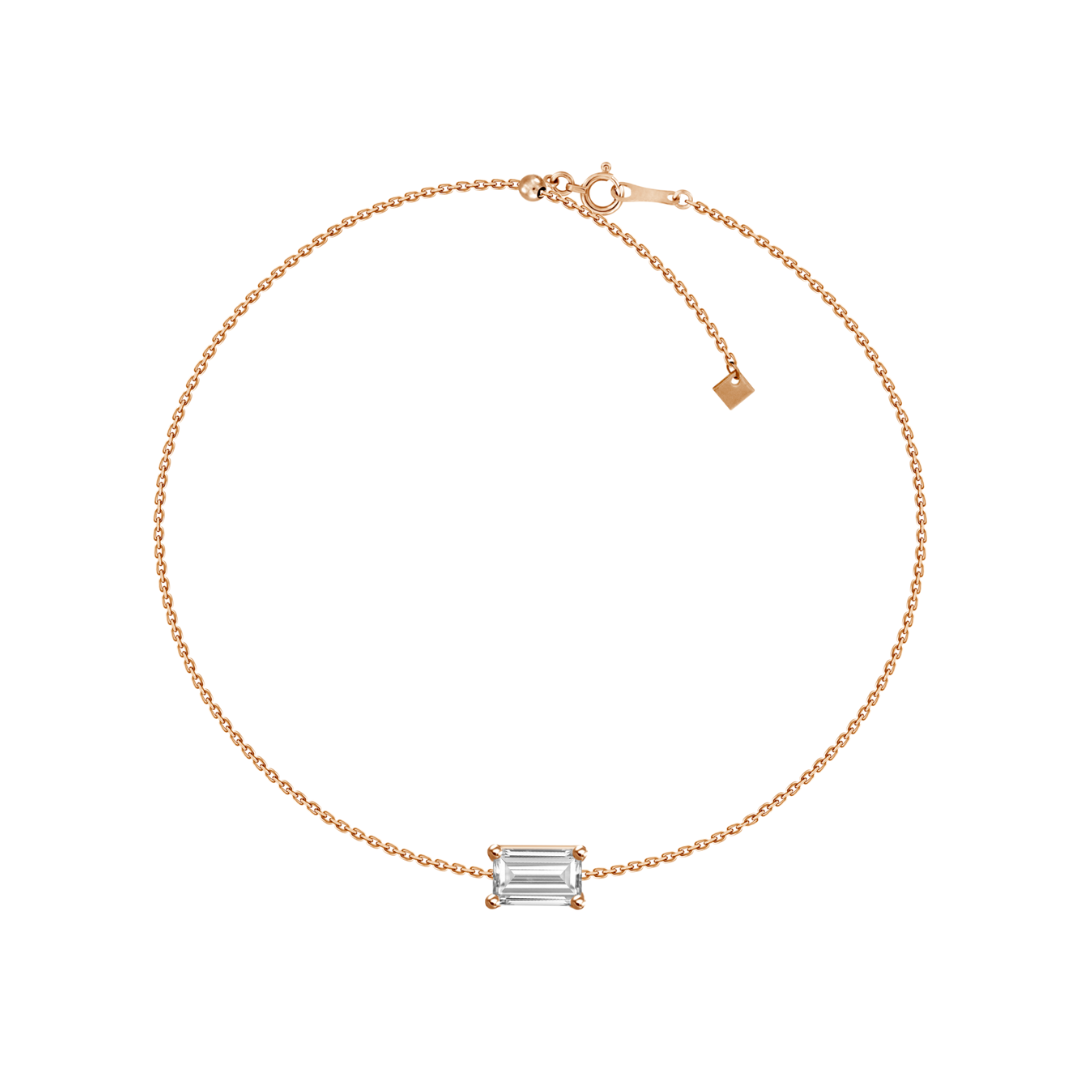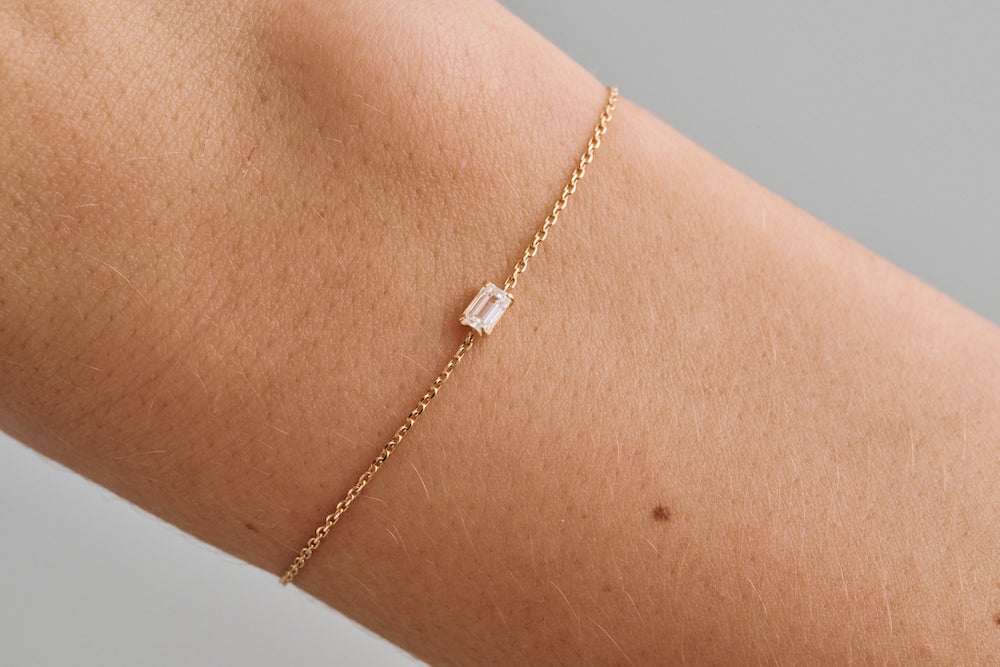 Beautifully handcrafted emerald diamond on an 18k solid gold cable link chain adjustable bracelet. Available in 18k yellow and white gold. Uber chic and timeless bracelet, perfect by itself or stacked.