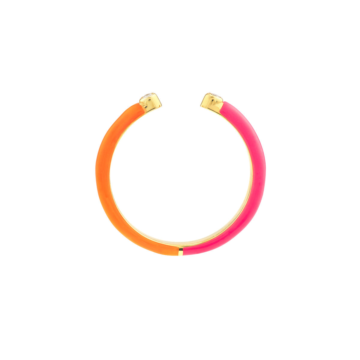 From the day into the night, we're loving this 3pt Diamond Cuff Ring. The half pink enamel combined with orange enamel is the perfect combination.