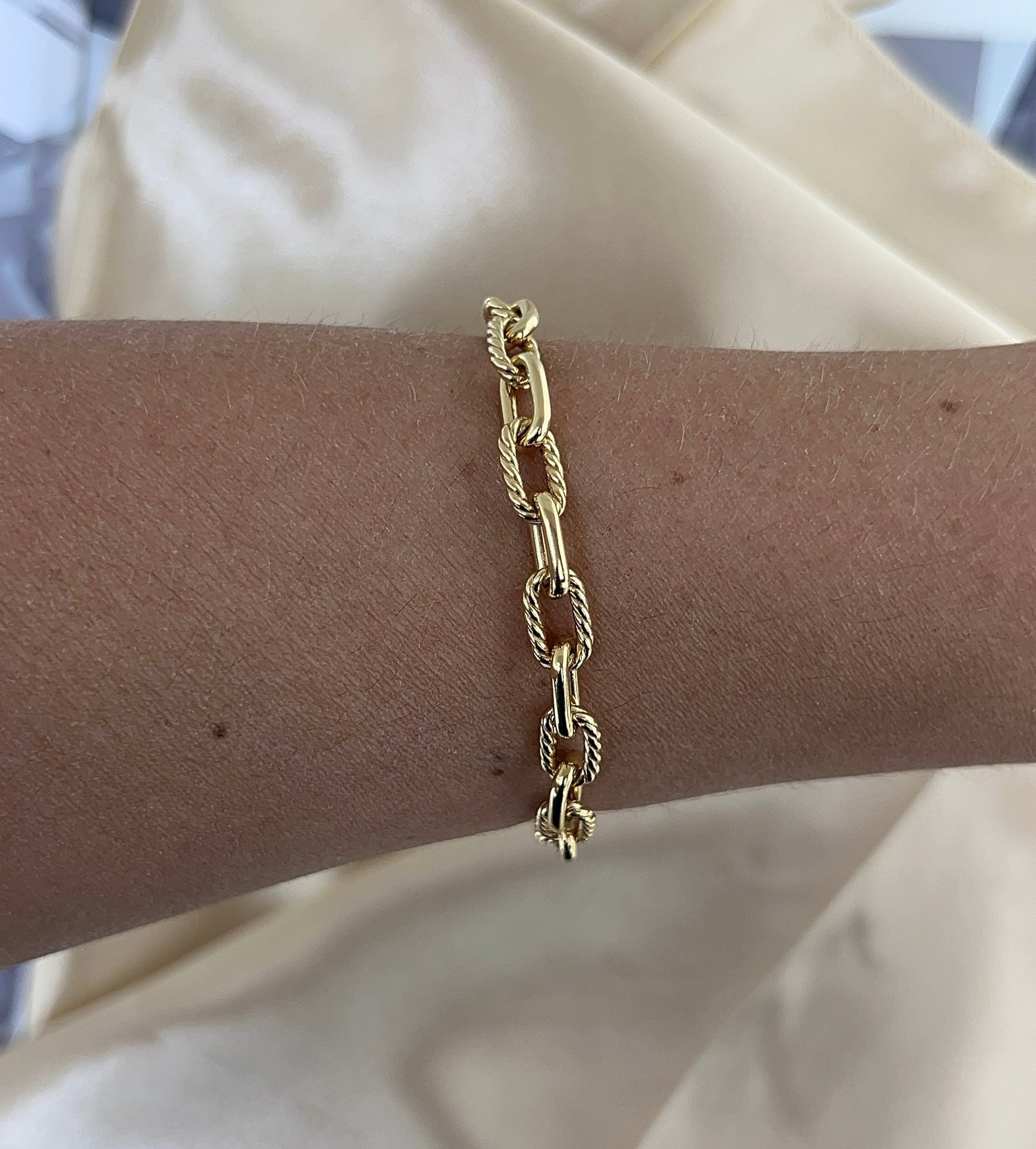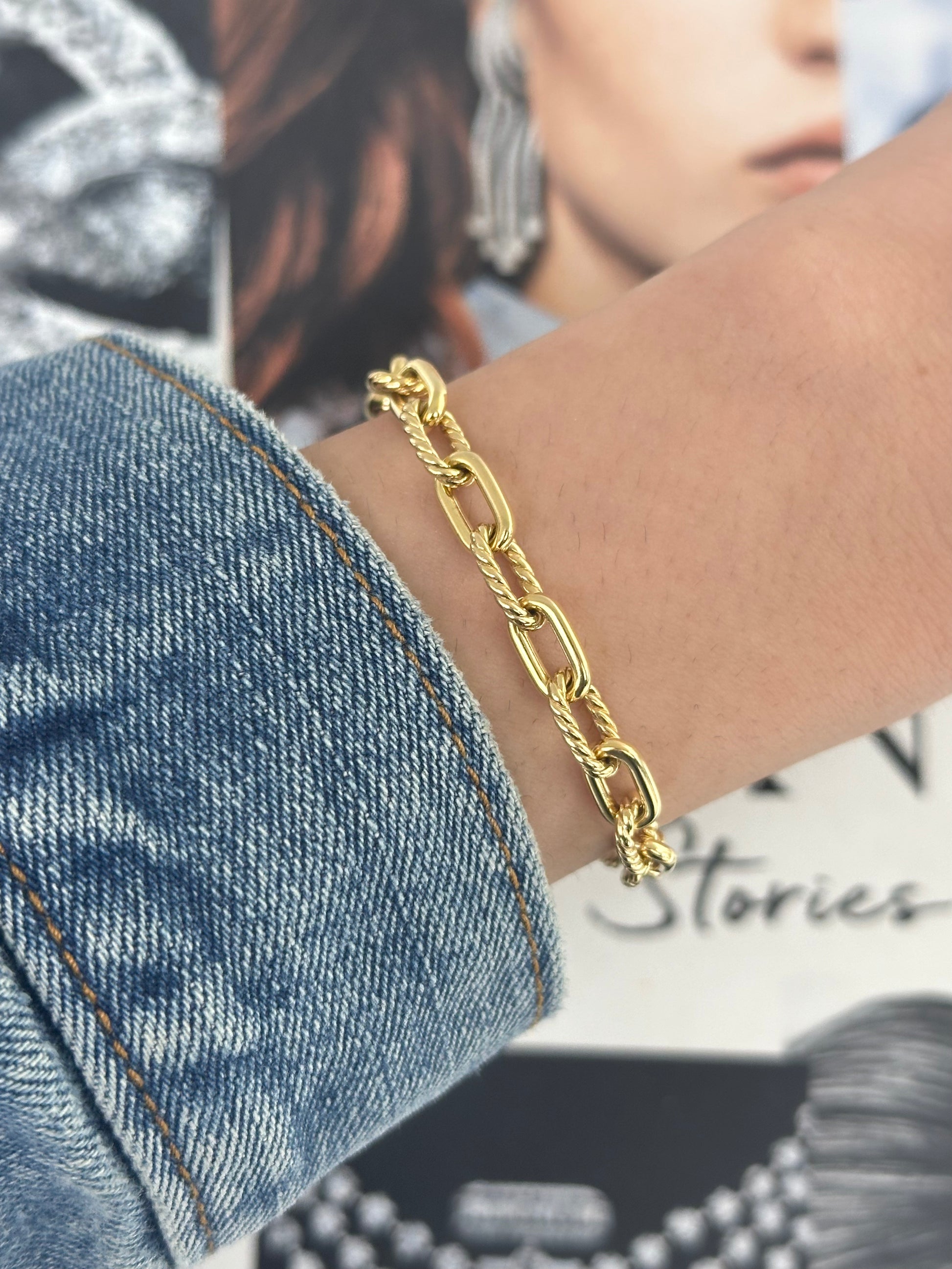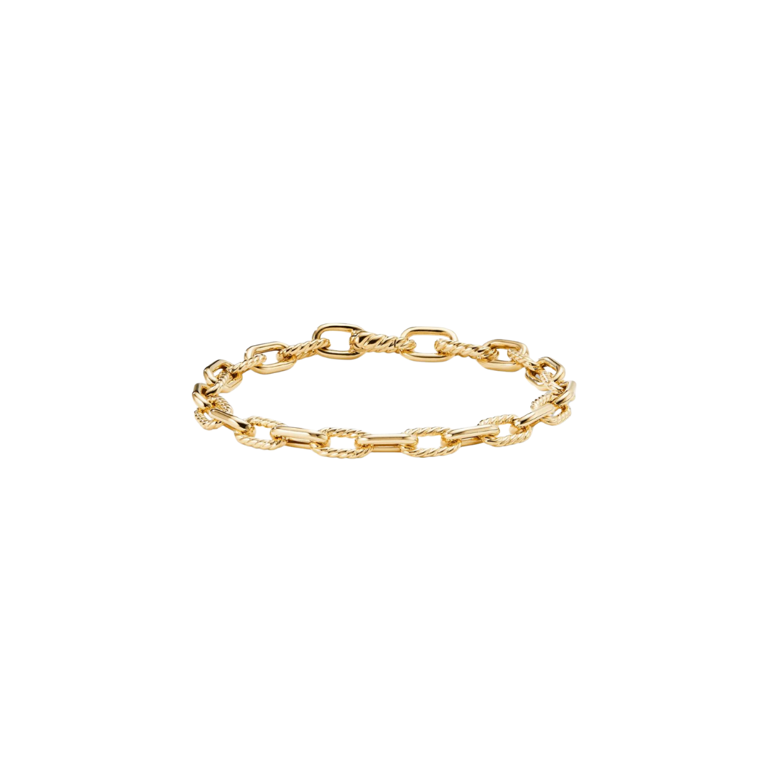 David Yurman's expert craftsmanship breathes new life into the timeless chain, showcasing sculptural links blending smooth and cabled textures for a modern update on a classic design.