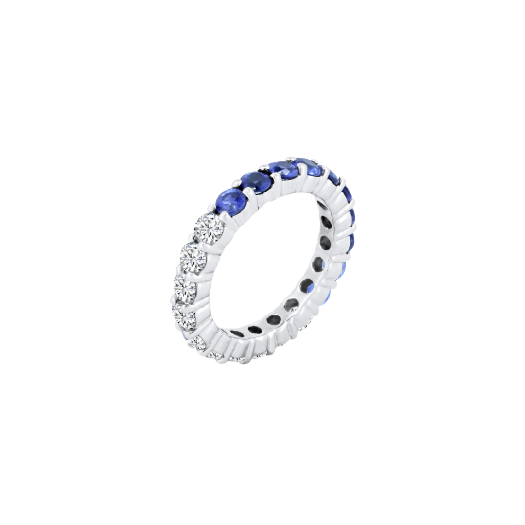 An elevated take to a timeless eternity band – Our Blue Sapphire and Diamond Eternity Band is the perfect complement of color to your everyday ring stack.