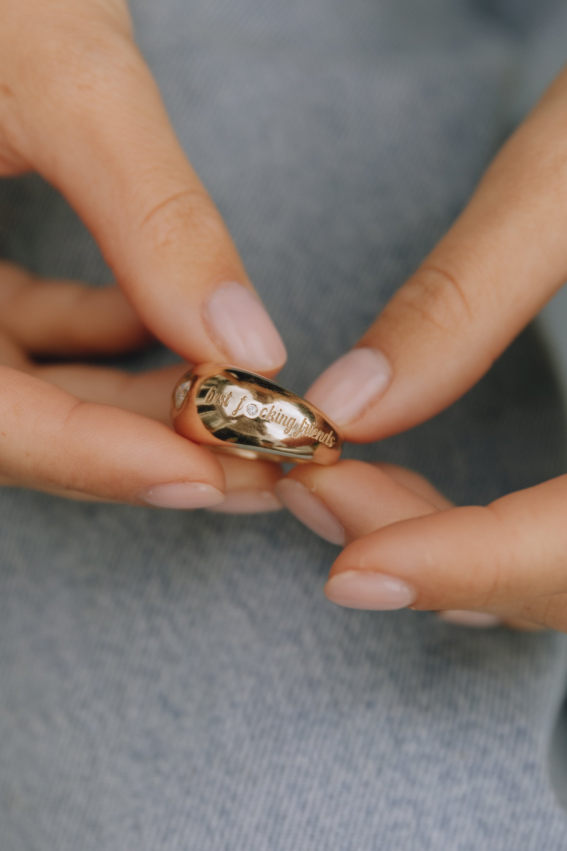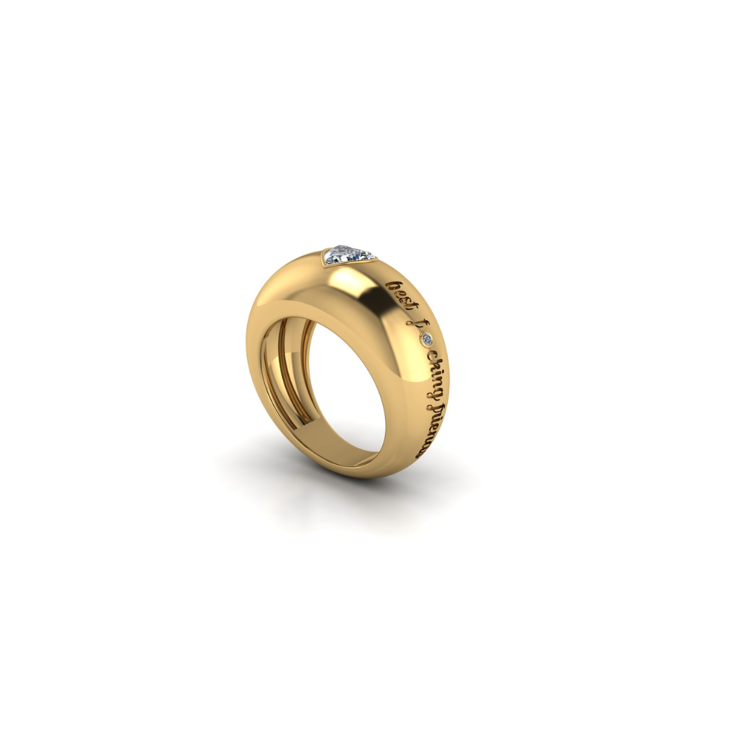 Your ring stack is sure to make a statement with this BFF bubble ring. A heart cut diamond is flush set onto a 14K bubble band. Add a fun engraving to this stunning ring.