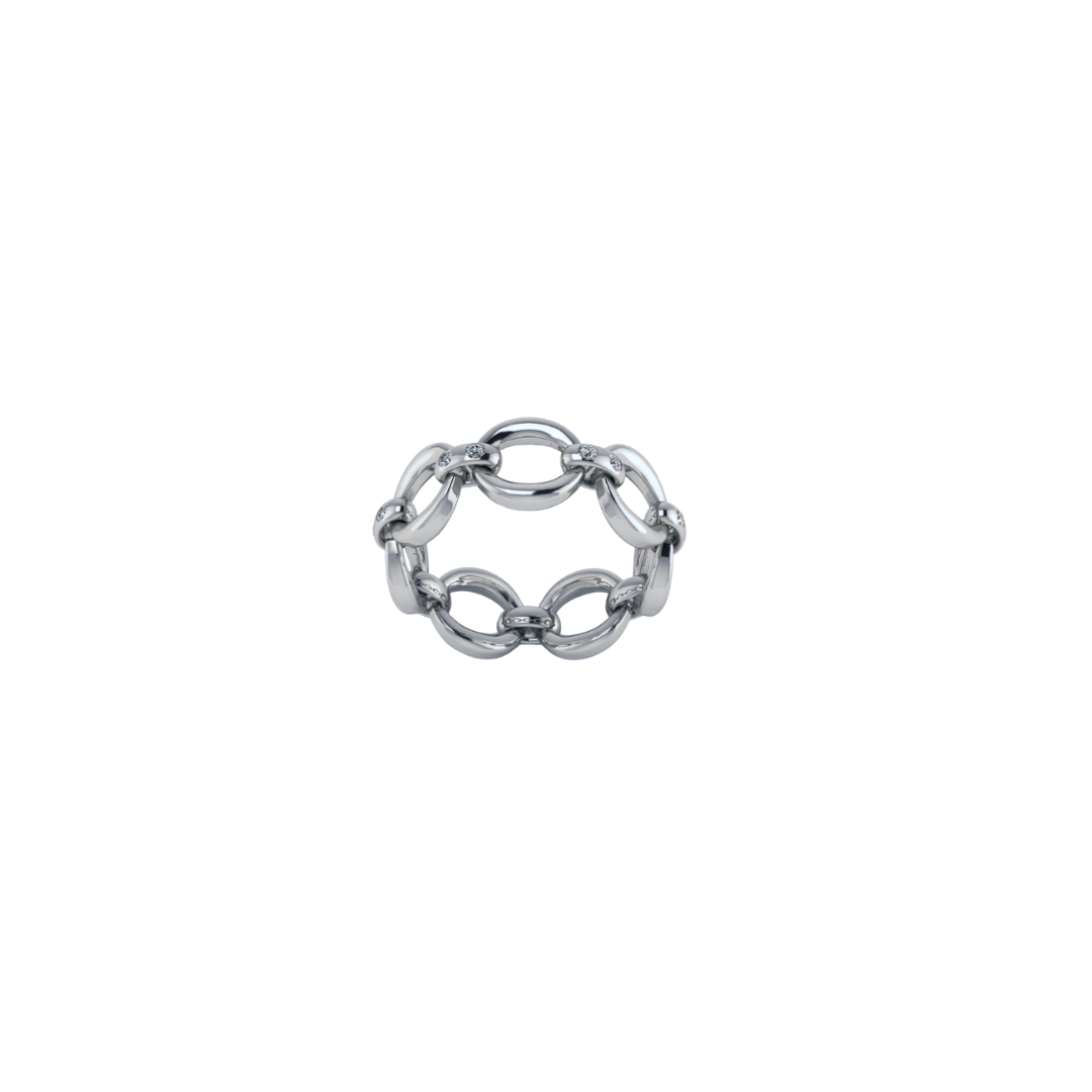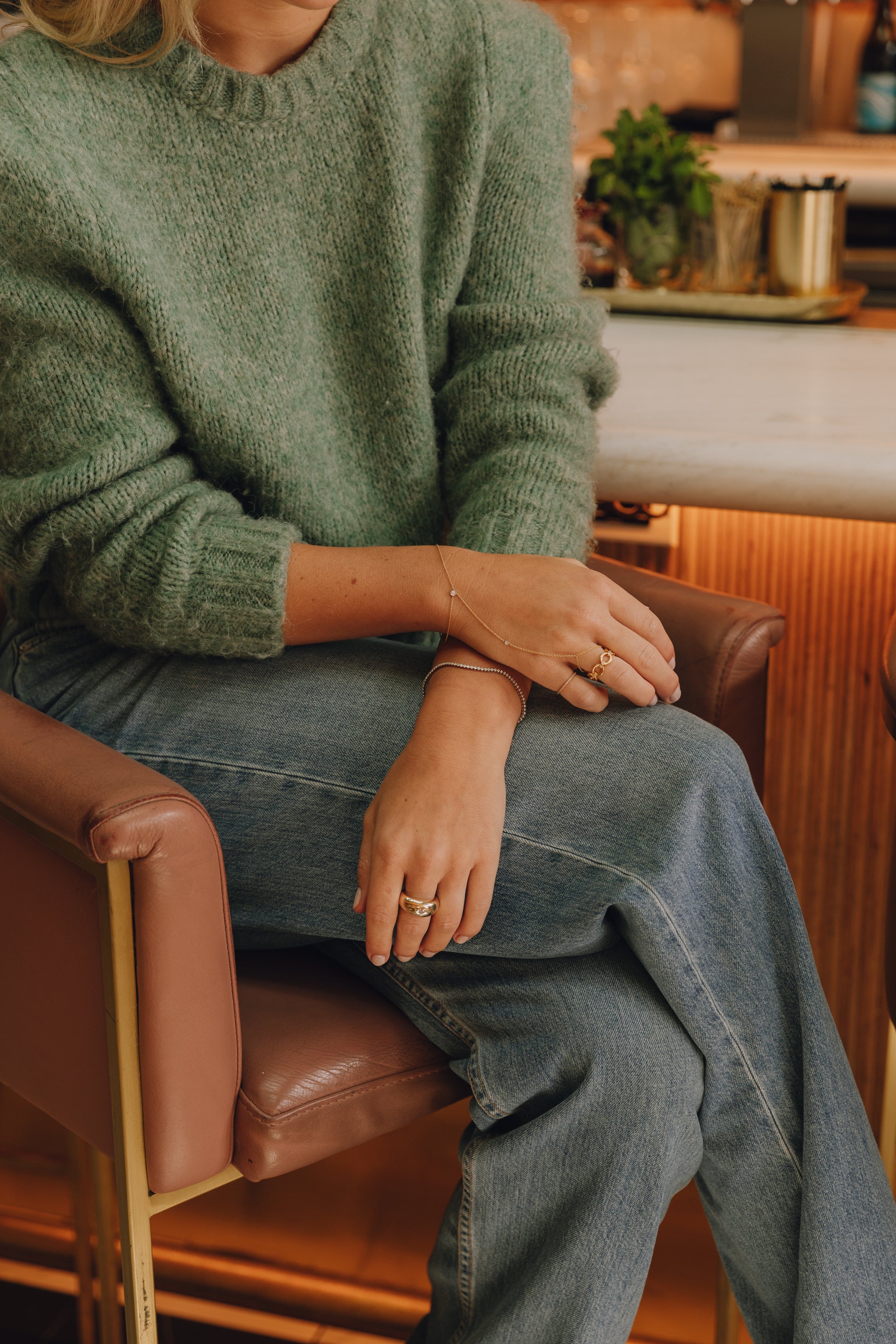 From our collaboration with Lyle & Mary Ralph Lawson comes the Two-Way Twin Chain Ring. Two round cut diamonds are flush set onto a handcrafted 14K gold eternity chain ring to stack with another ring or style alone.