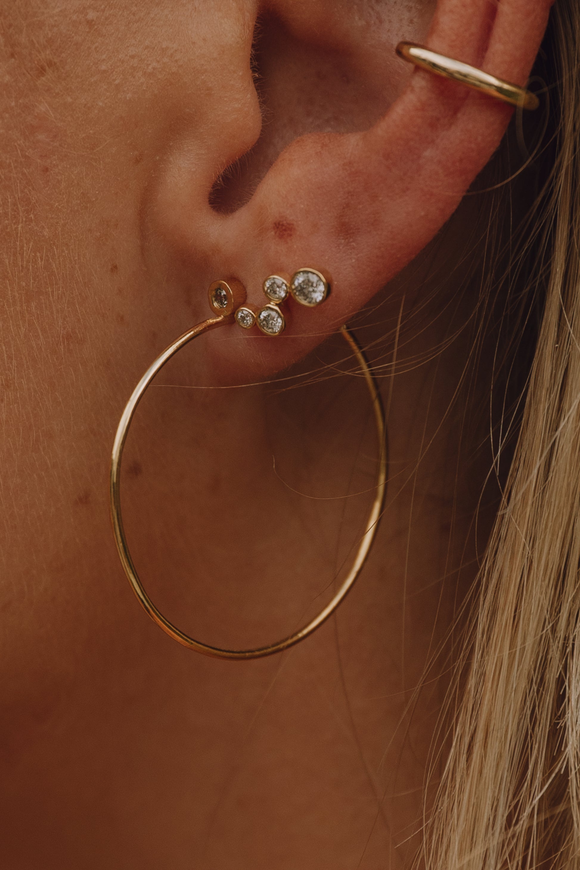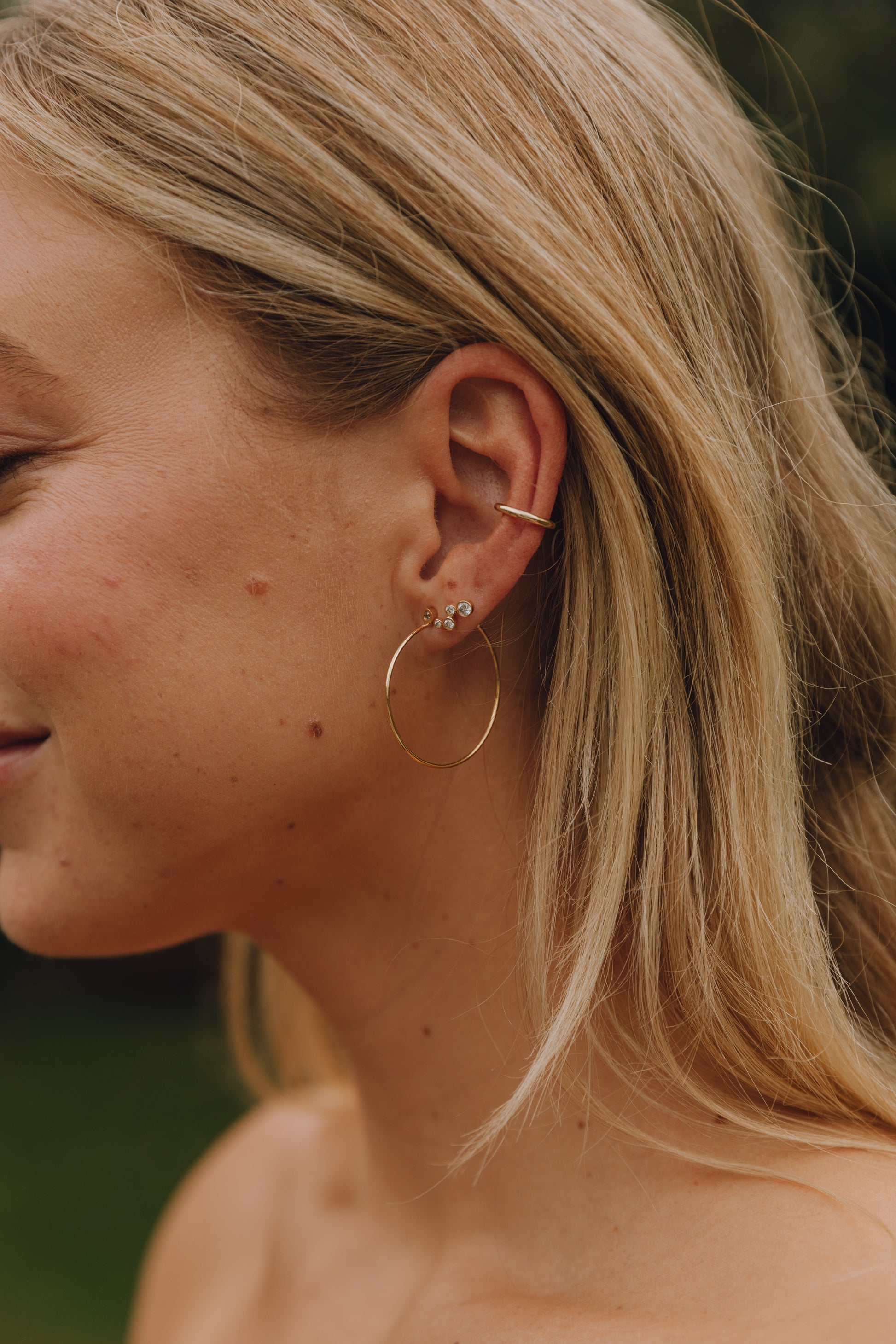 These 14K gold thin hoop earrings are so lightweight, you'll forget you're wearing them! They feature a delicate diamond bezel set in 14K gold. Whether you dress these up or down they will be a forever classic in your jewelry collection.