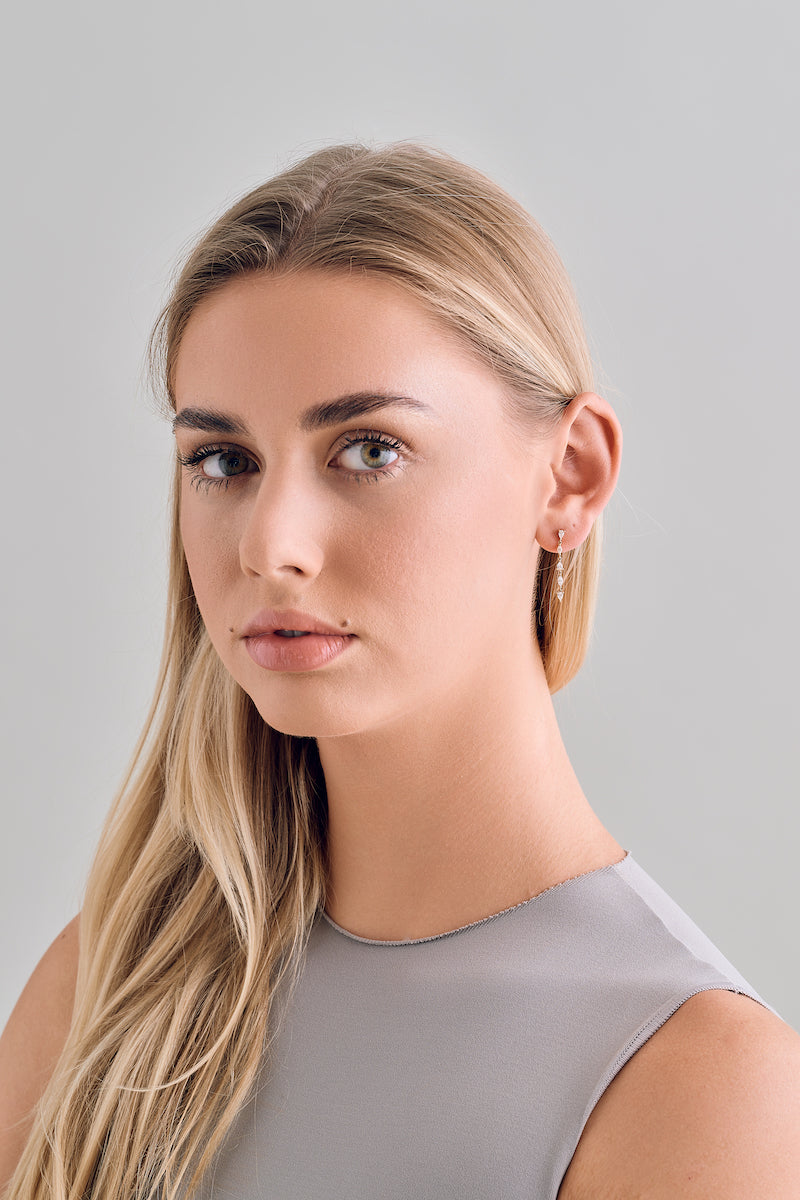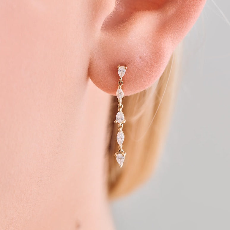 A tennis earring with a modern twist, alternating marquise and pear cut diamond drops - a bold, yet delicate feel.