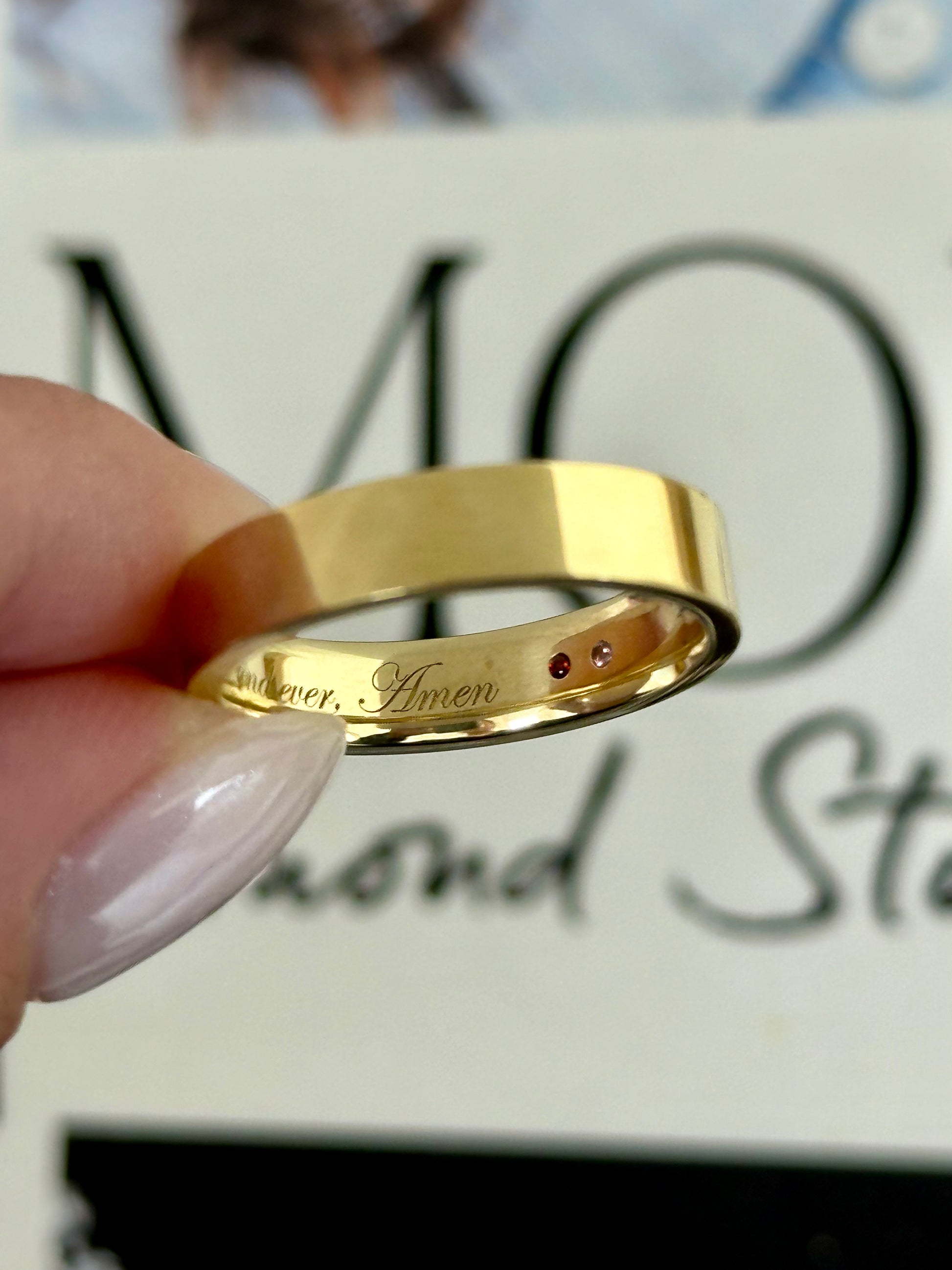 Introducing James, our first men's wedding band. Meticulously handcrafted in solid gold, this piece prioritizes comfort and is crafted for daily wear. Embrace a lifelong commitment with this timeless, contemporary heirloom.