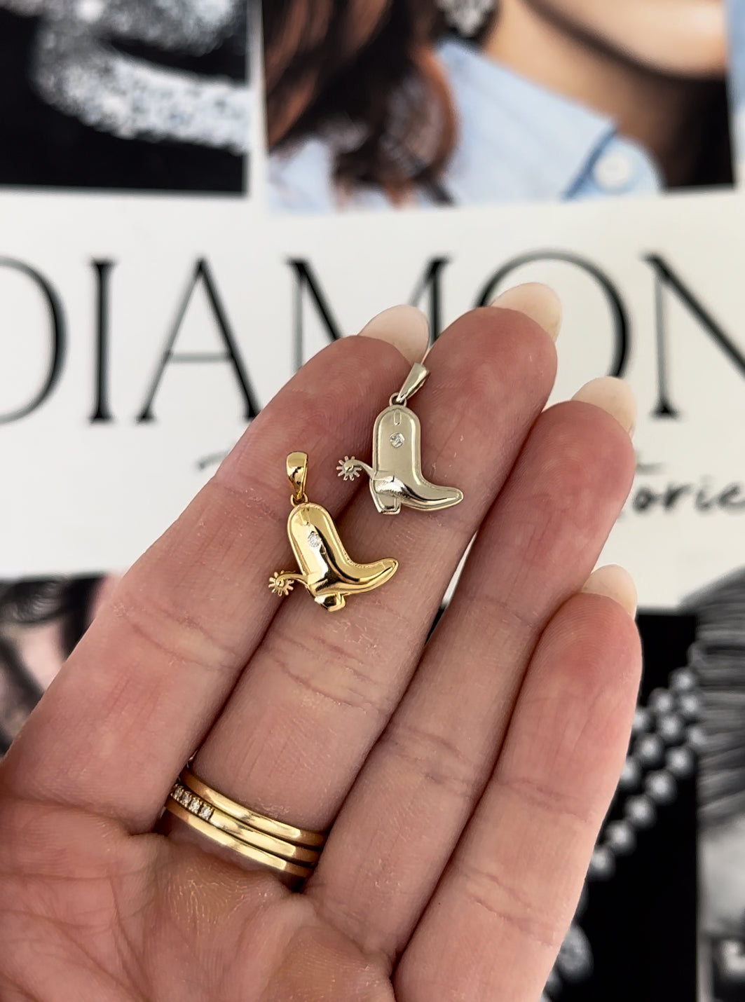 There’s a saying that goes, “good boots take you to good places.” This charm was designed to represent not just the courage to forge your own path, but the gusto to sprinkle in some adventure and enjoy the journey while you’re on your way there. The solitary diamond represents a reminder to find happiness and magic – even in the most common place of surroundings. This charm embodies perseverance, resilience, and the pursuit of dreams – while reminding you to have fun (the spinning spur!).