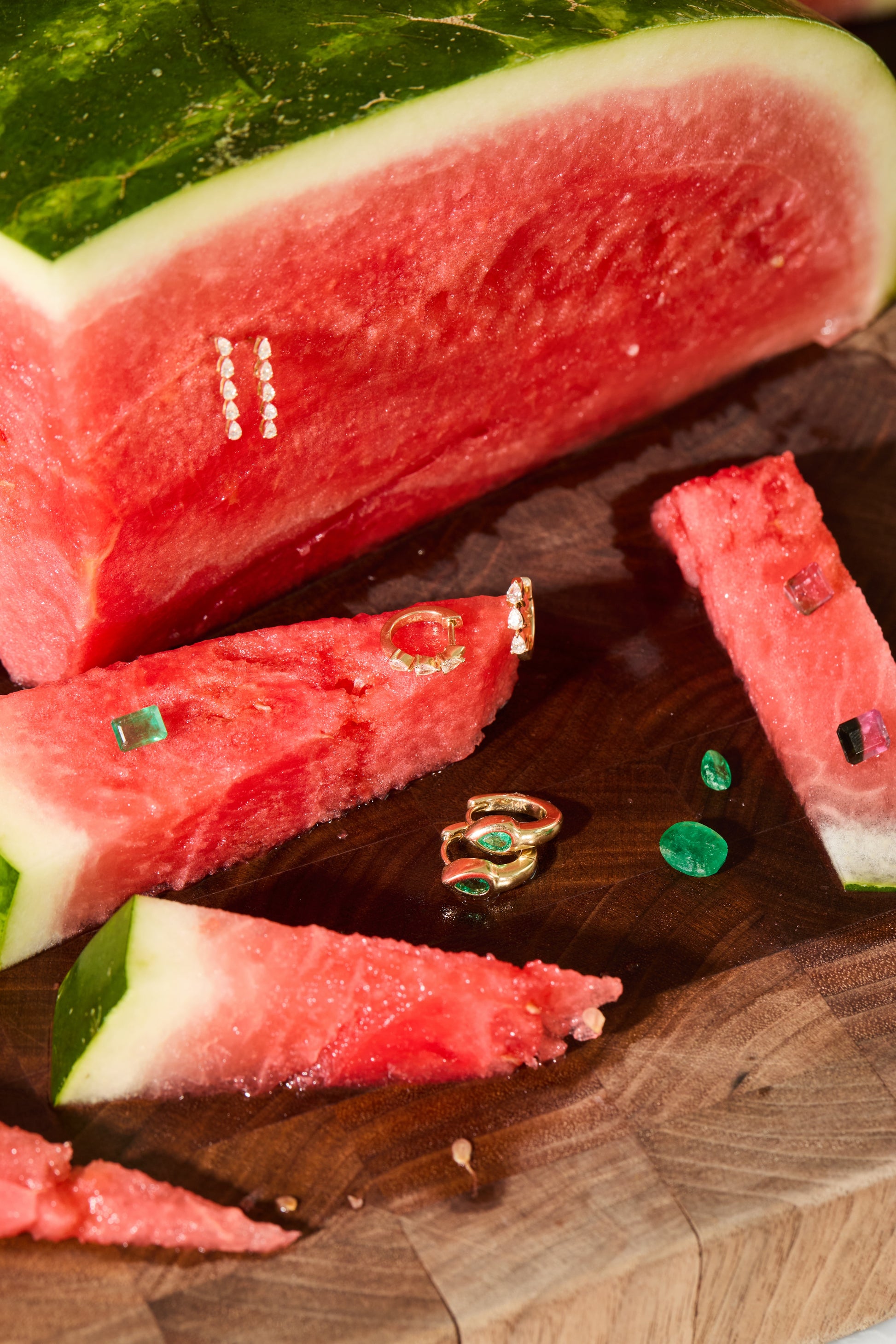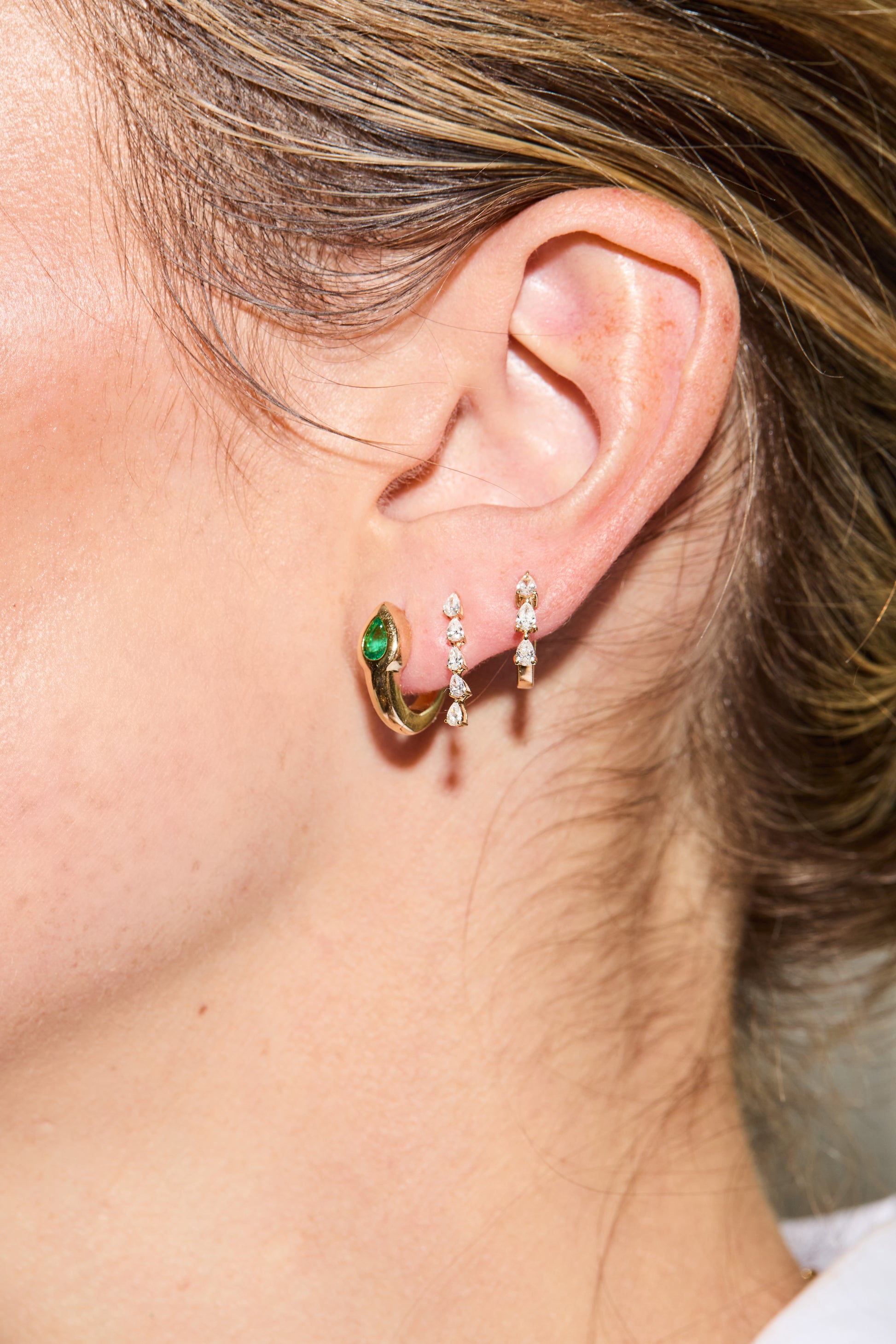 Paired with the effervescent Watermelon Spritz, the Pear Cut Diamond Drops bring a splash of sparkle and sophistication, like the final pour of prosecco over sun-ripened fruit. Designed with elongated pear-shaped diamonds, these drops capture the fluid elegance of a slow, refreshing sip.