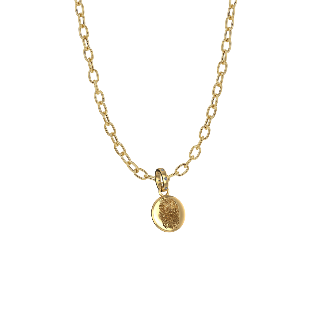 Crafted in 14K gold, our Personalized Fingerprint Pendant is a timeless keepsake that captures the unique touch of your loved one. Each pendant is custom-engraved with a fingerprint, creating a one-of-a-kind piece that is both meaningful and elegant. Choose diamonds or colored birthstones to add the bail for an extra personalization.