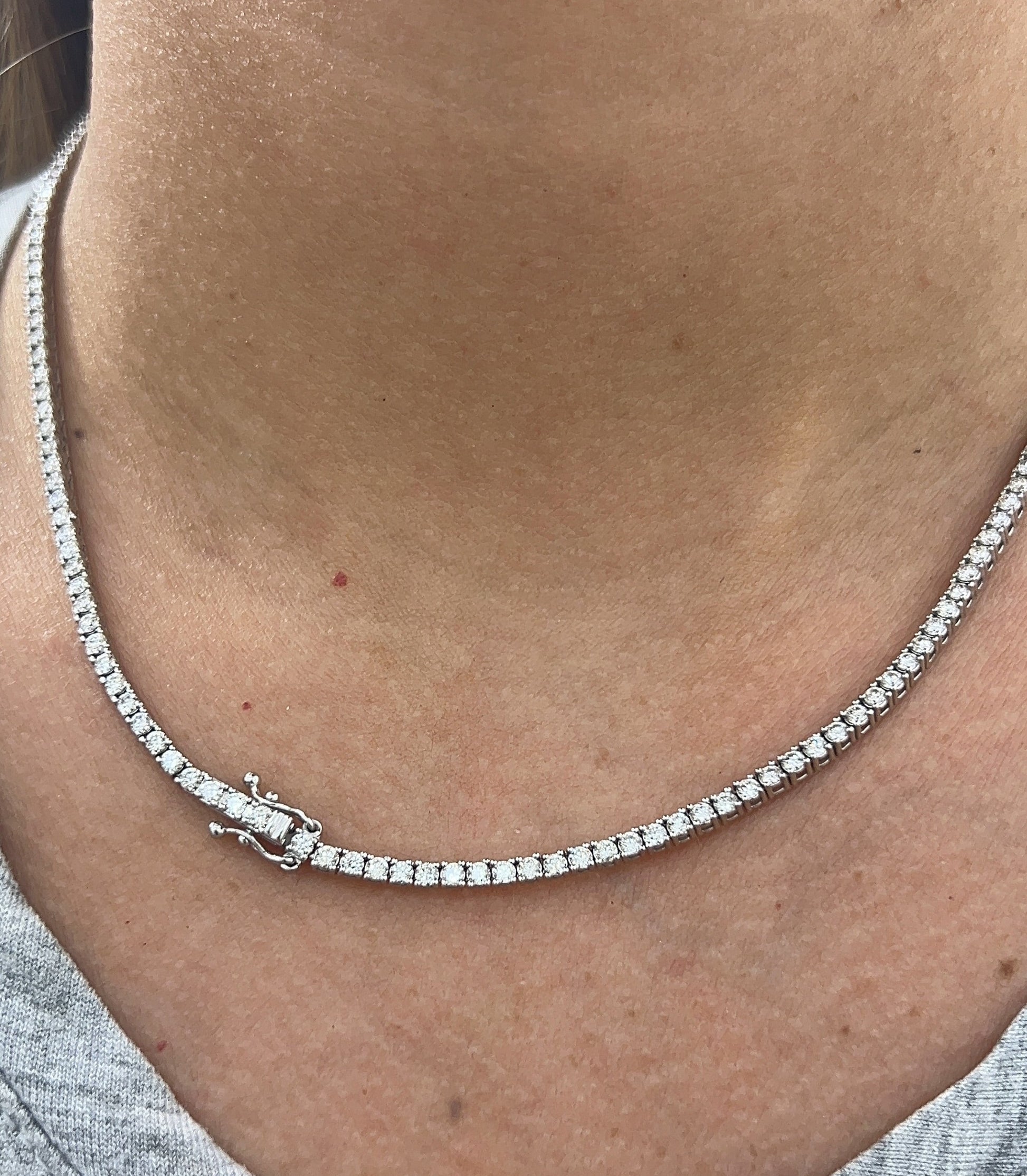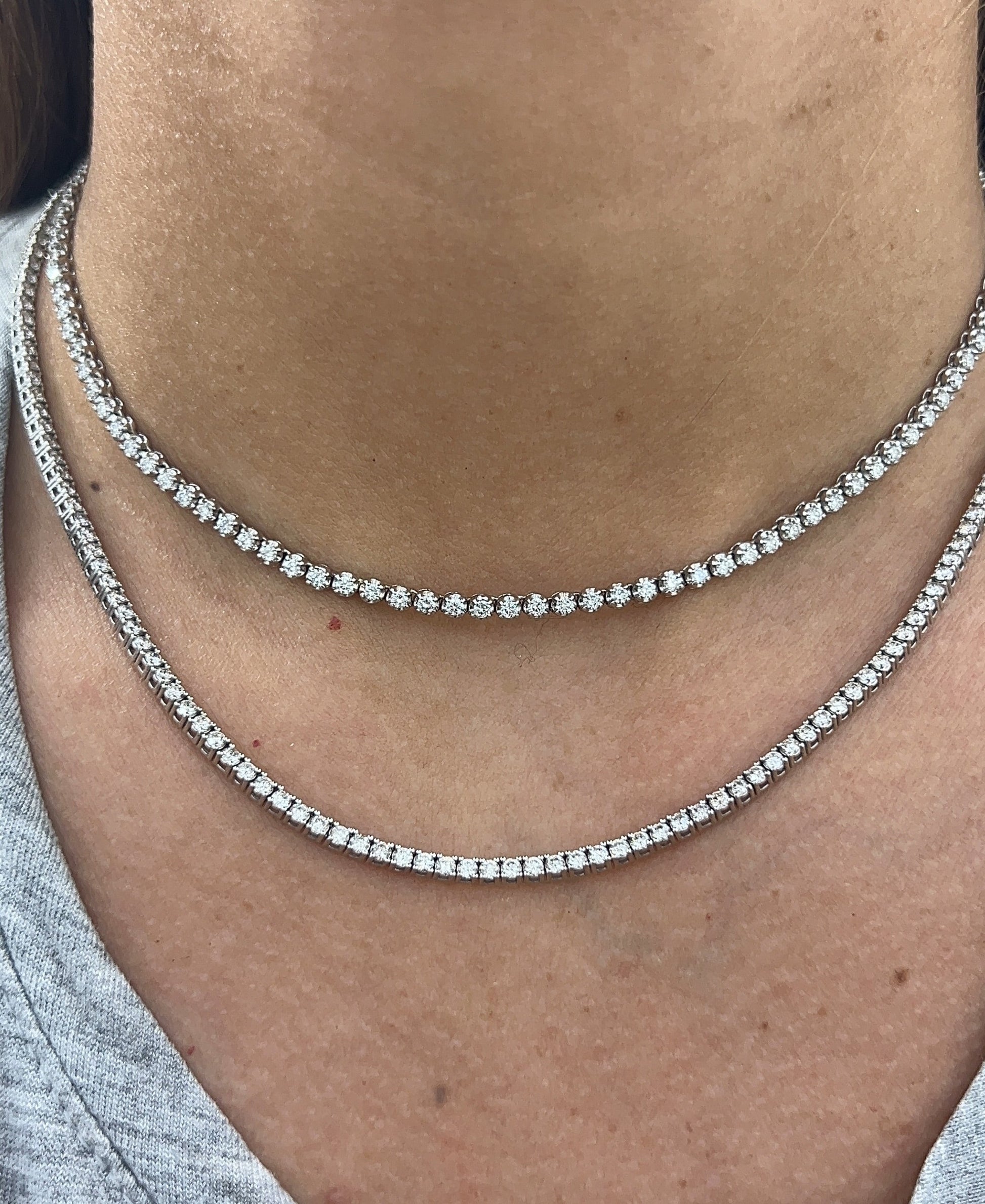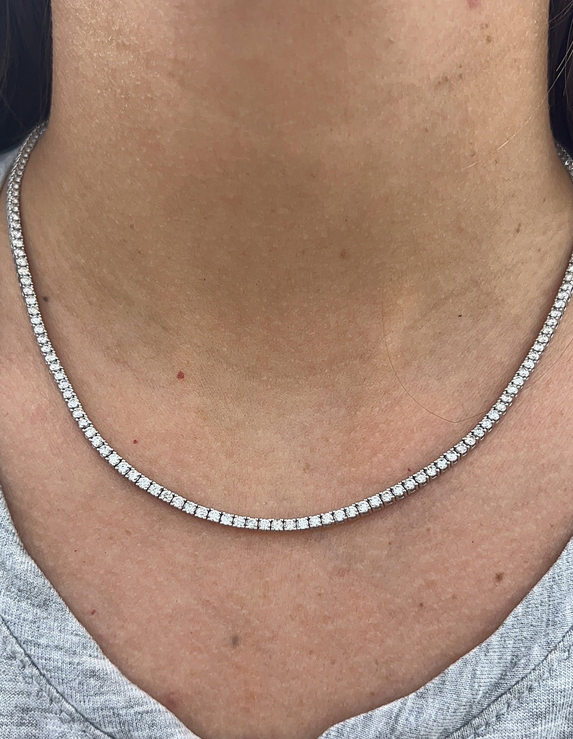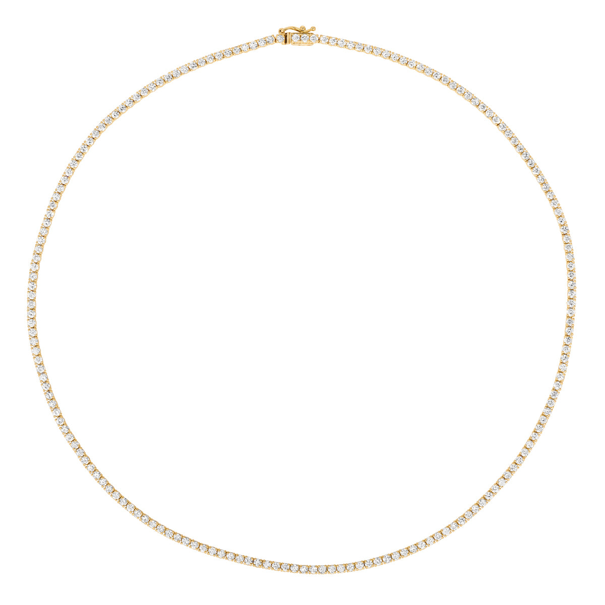 Add a new classic to your jewelry collection with our Petite Diamond Tennis Necklace handcrafted with 14K gold. This delicate take on the classic tennis chain design is something you can wear with anything in your wardrobe.