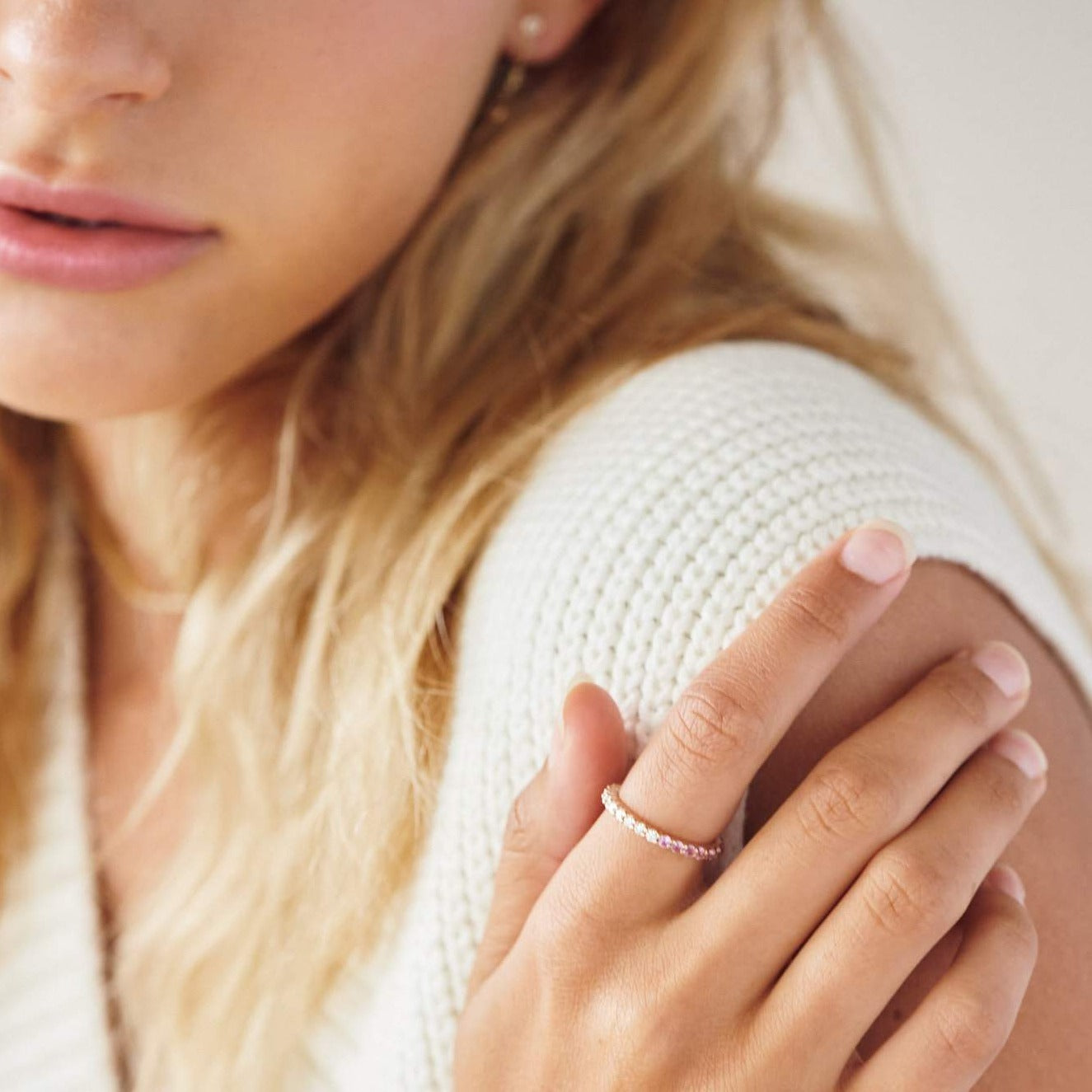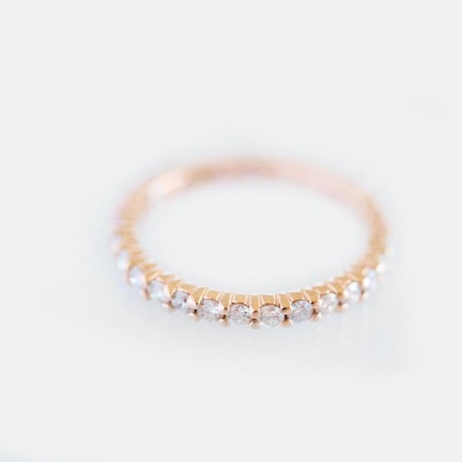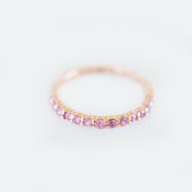 An elevated take to a timeless eternity band – Our Pink Sapphire and Diamond Eternity Band is the perfect complement of color to your everyday ring stack.