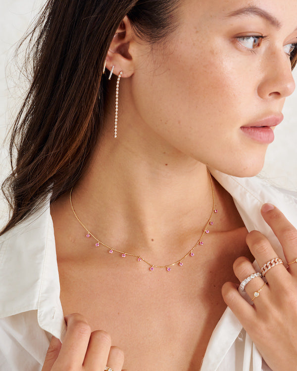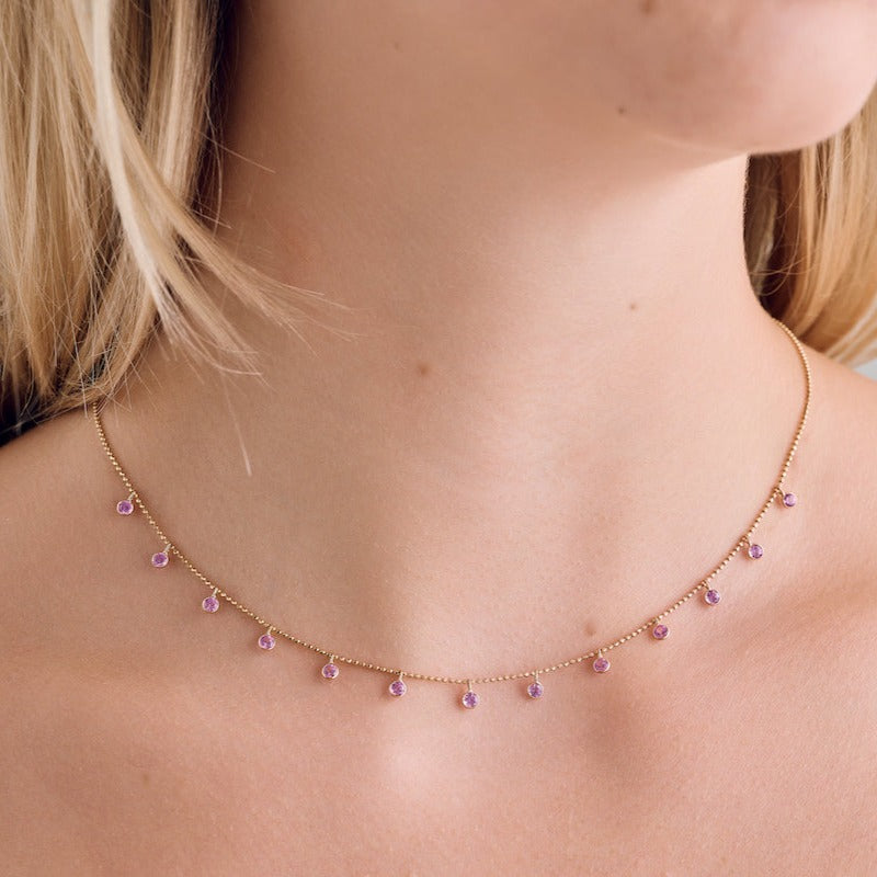 A fun take to our classic Drop Station Necklaces. Add a pop of color to your layering necklace game.