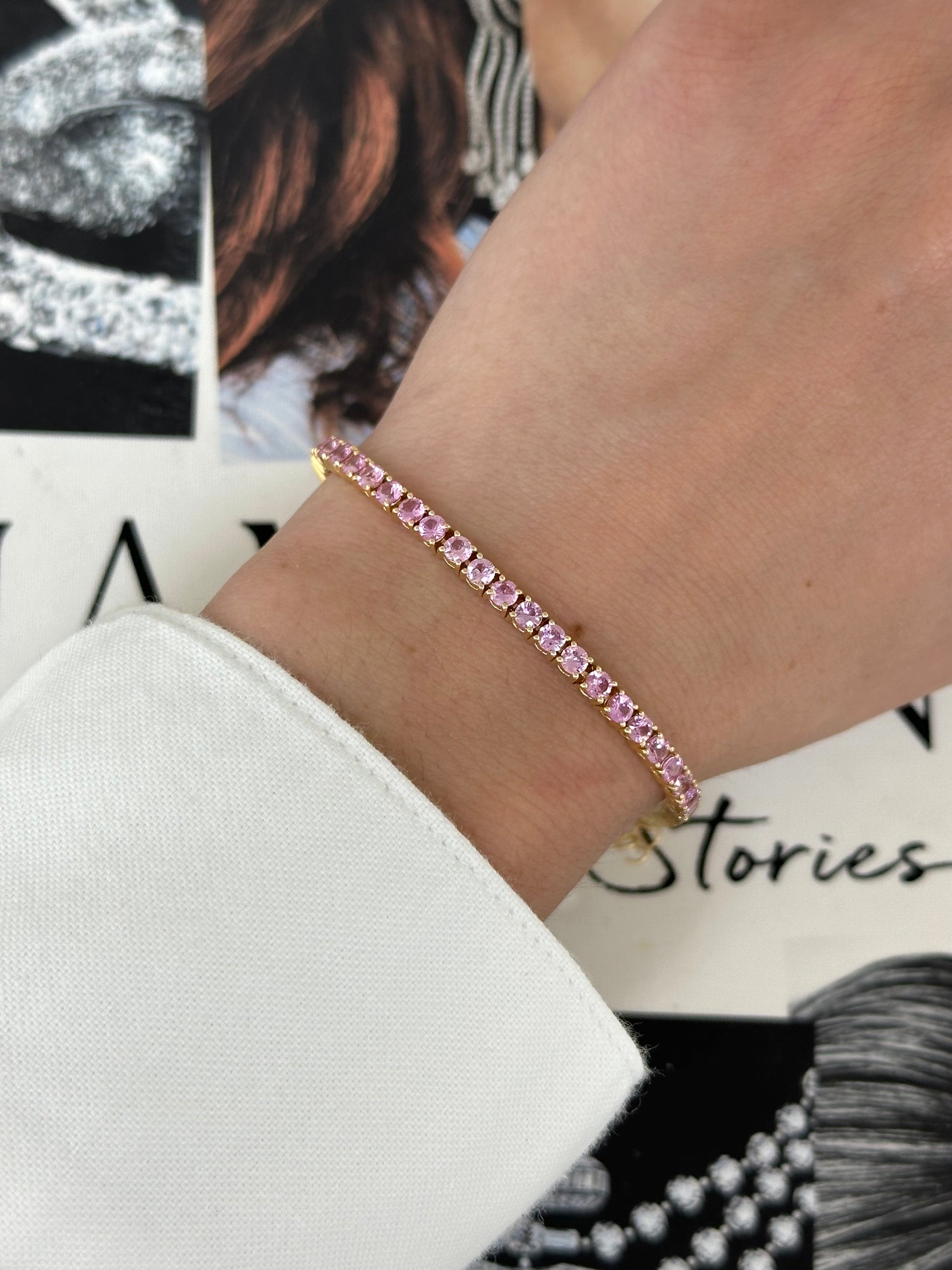 Radiate in pink perfection with this exquisite pink sapphire tennis bracelet. Whether it's for Mother's Day, a push present, or simply for the pink-loving ladies in your life, it's the ultimate symbol of elegance and femininity.