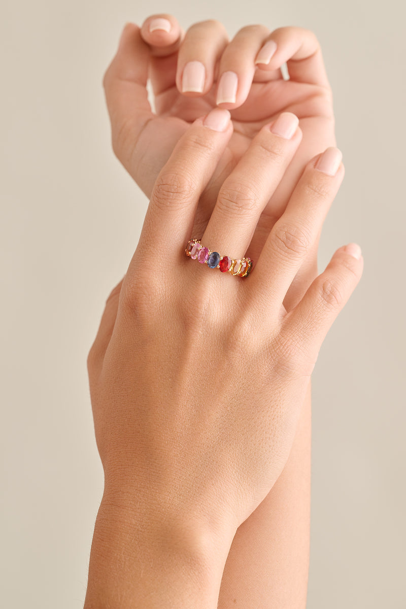 A true show-stopper - Our Rainbow Eternity Band is the ideal boost of color for your day-to-day look.