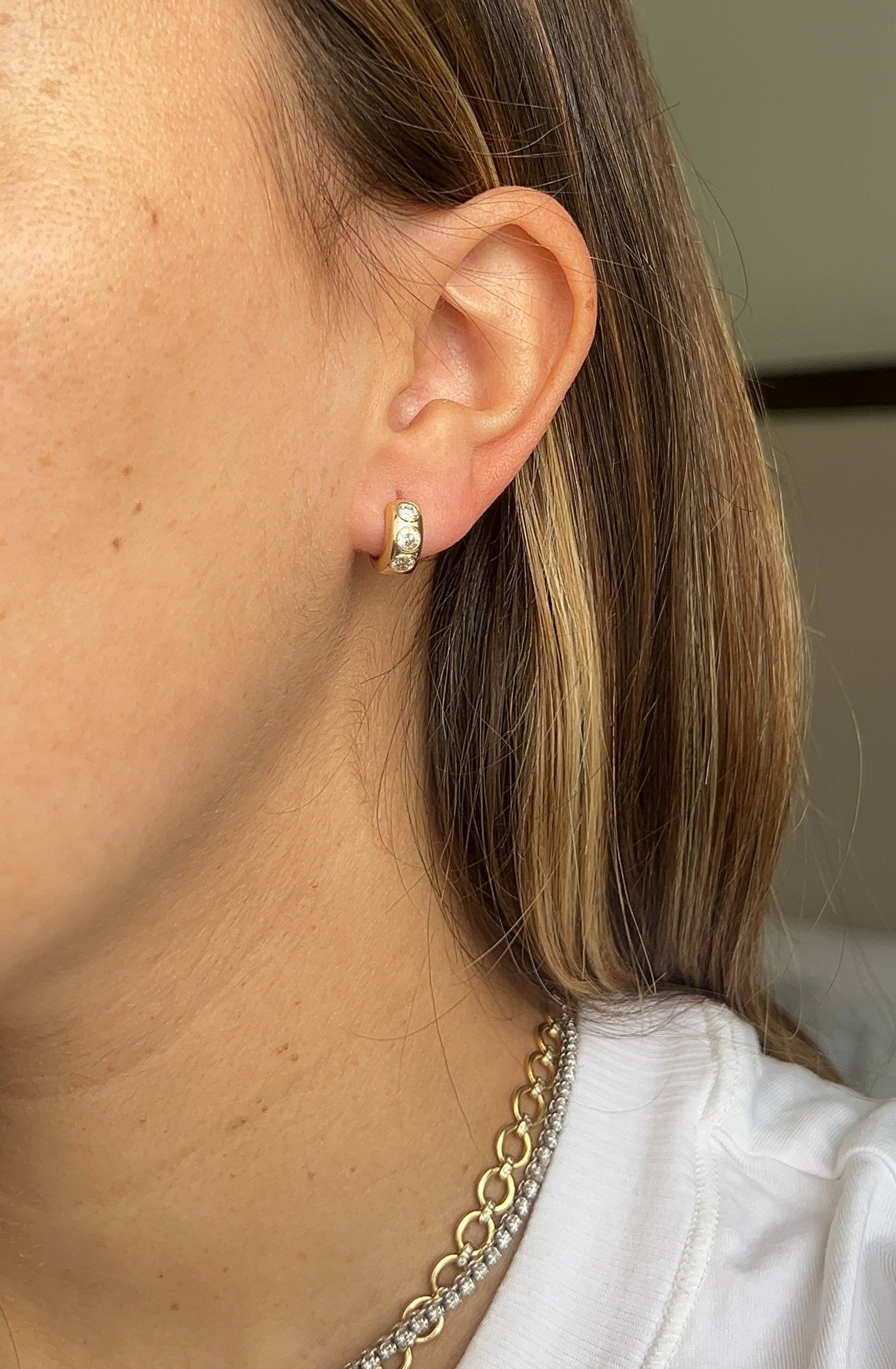The Round Diamond Flush Set Hoops are a timeless blend of subtle sparkle and sleek design, featuring three round diamonds expertly flush-set into each huggie. The smooth, polished finish allows the diamonds to shine beautifully while maintaining a refined, minimalist look.