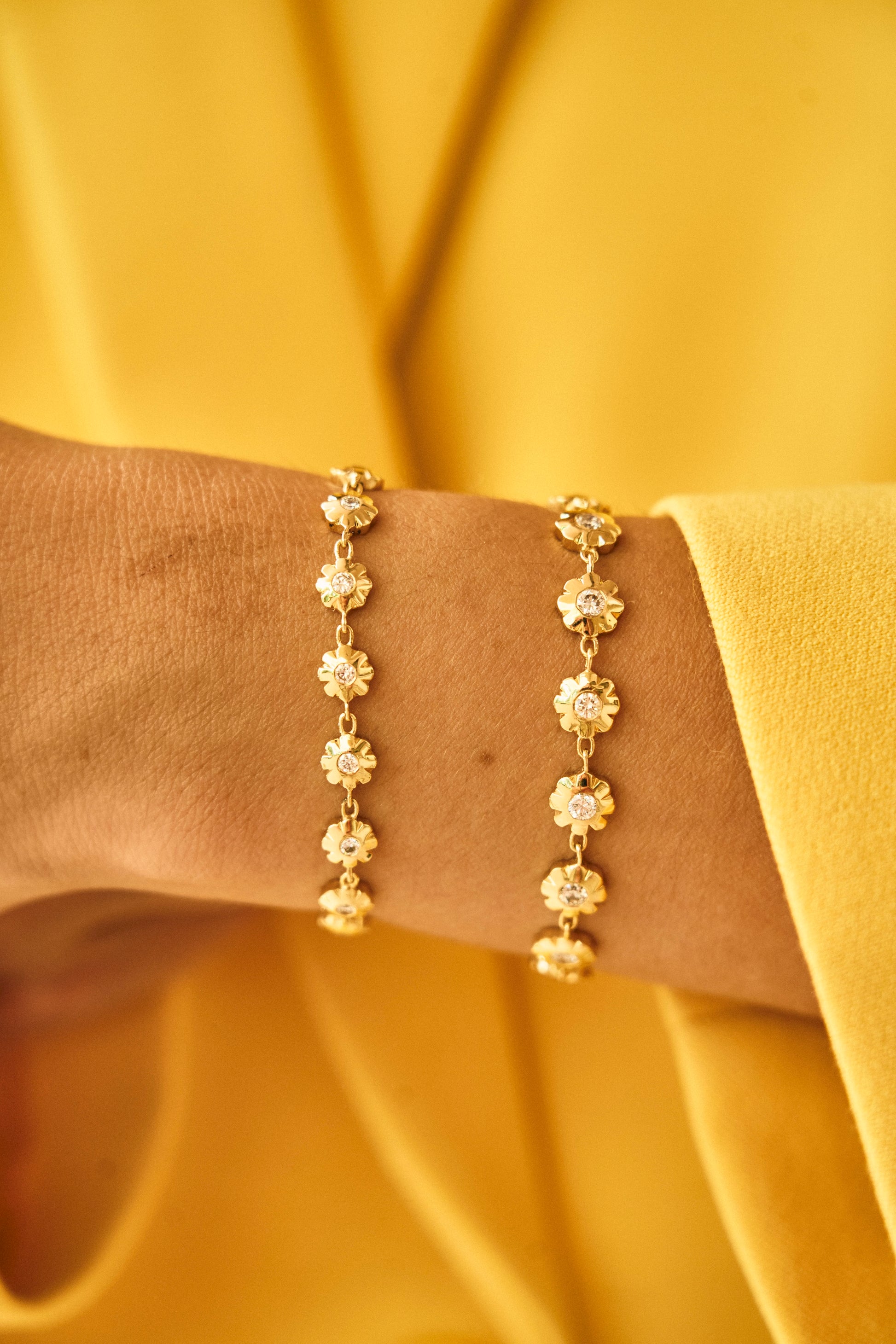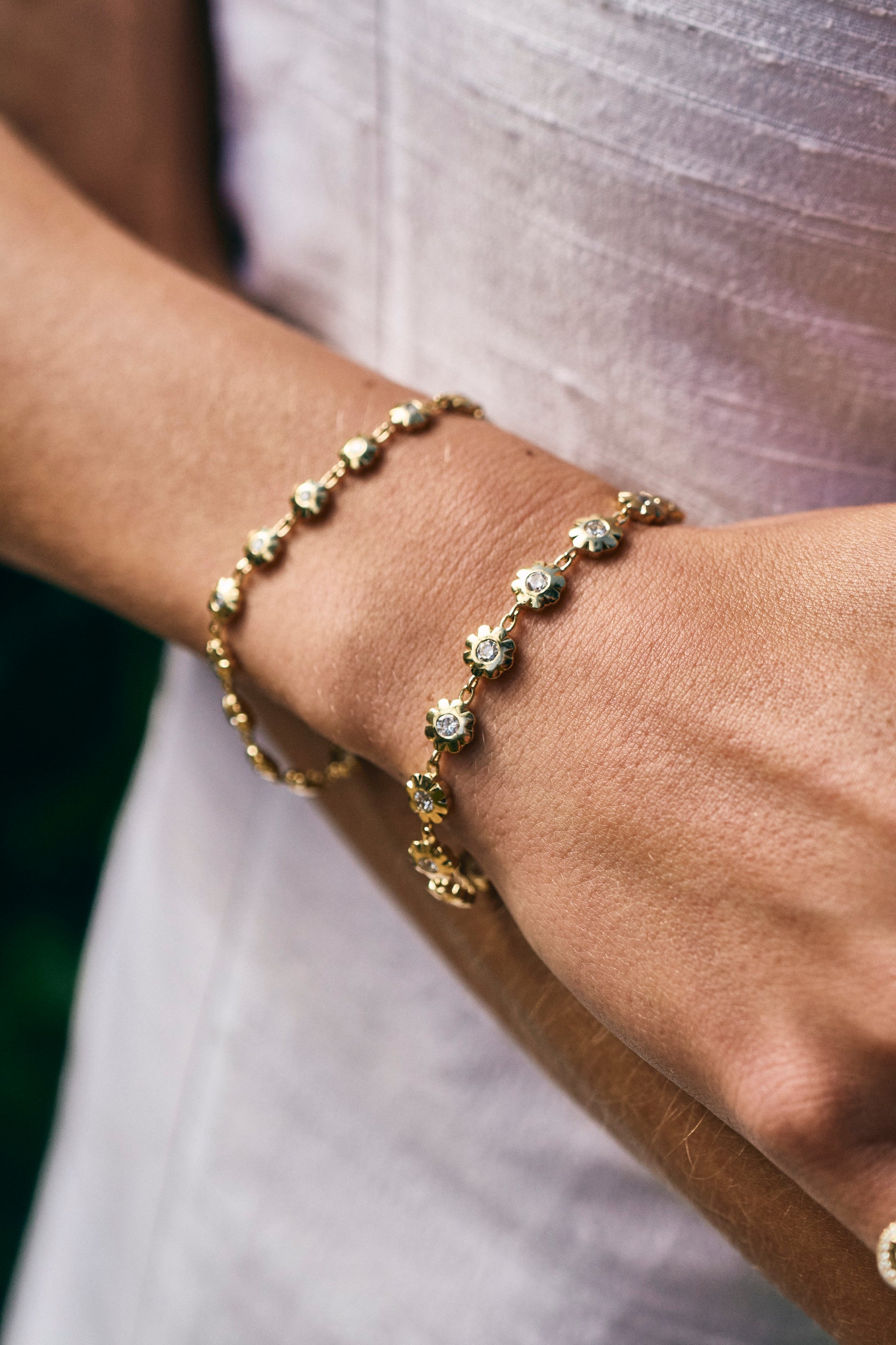 Add a touch of elegance with our Daisy Scallop Tennis Bracelet—a floral twist on a classic favorite.
