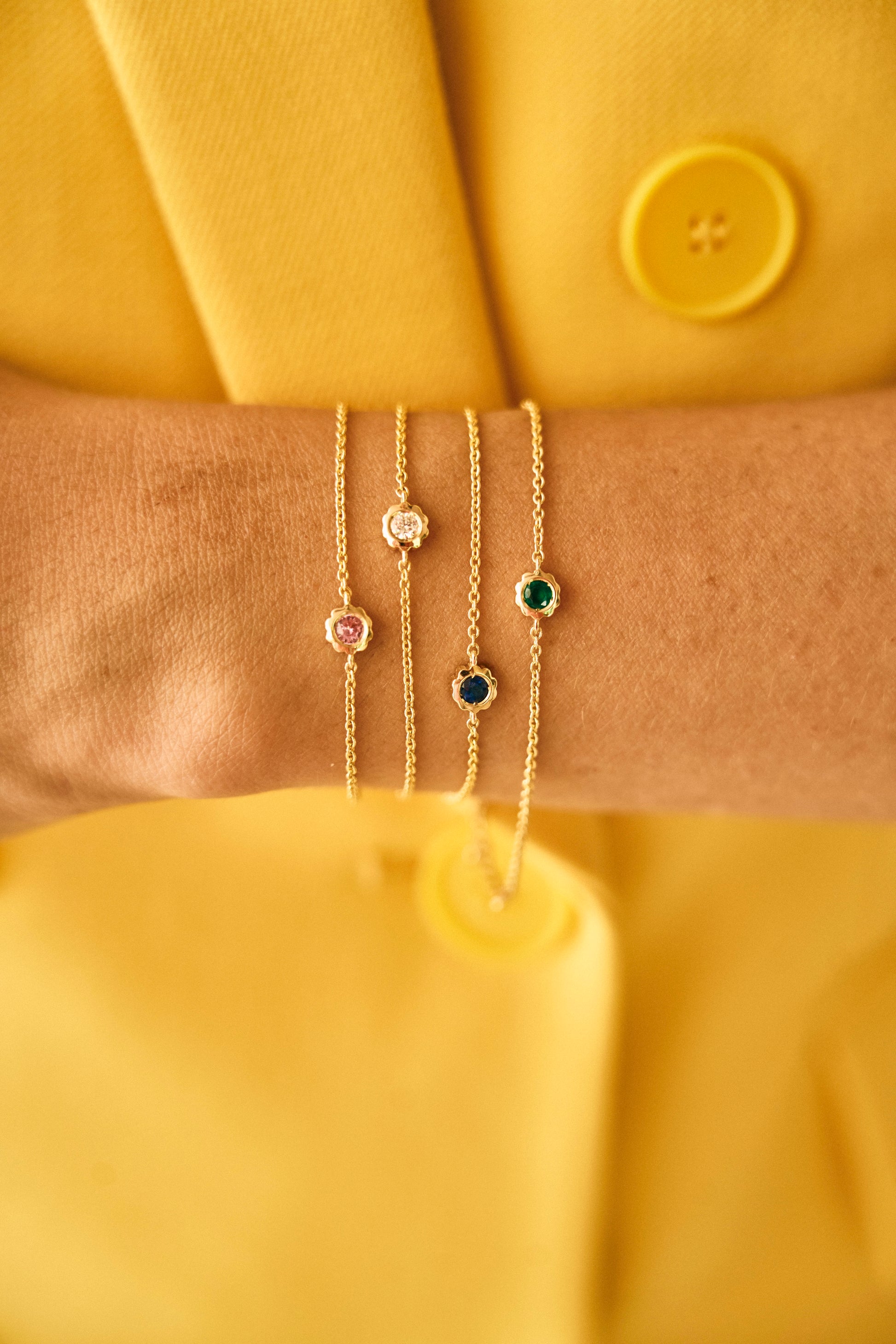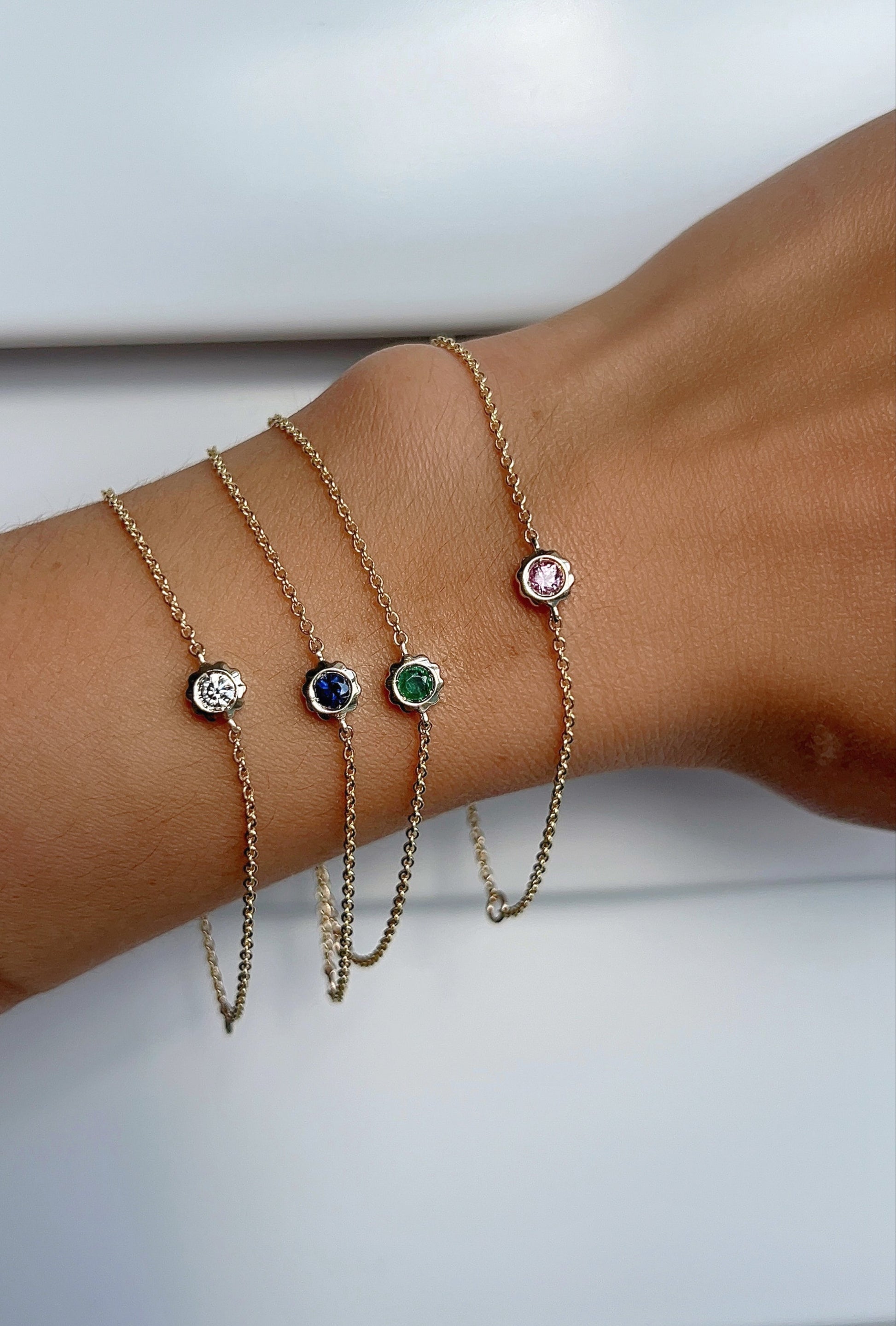 The Scalloped Bezel Gemstone Bracelet showcases a natural colored gemstone set in our signature scalloped bezel, blending classic charm with modern sophistication. Perfect for layering or wearing solo, this bracelet is a versatile staple for any jewelry collection.