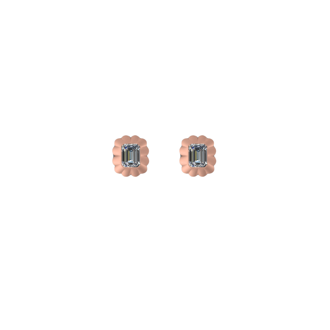 The Scalloped Emerald Diamond Studs showcase stunning emerald or baguette cut diamonds set in a unique bezel setting with our signature delicate scalloped edge. The elegant design enhances the brilliance of the diamonds, offering a sophisticated, modern twist on a classic stud. Perfect for any occasion, these earrings add a touch of timeless luxury and refined sparkle to your jewelry collection.