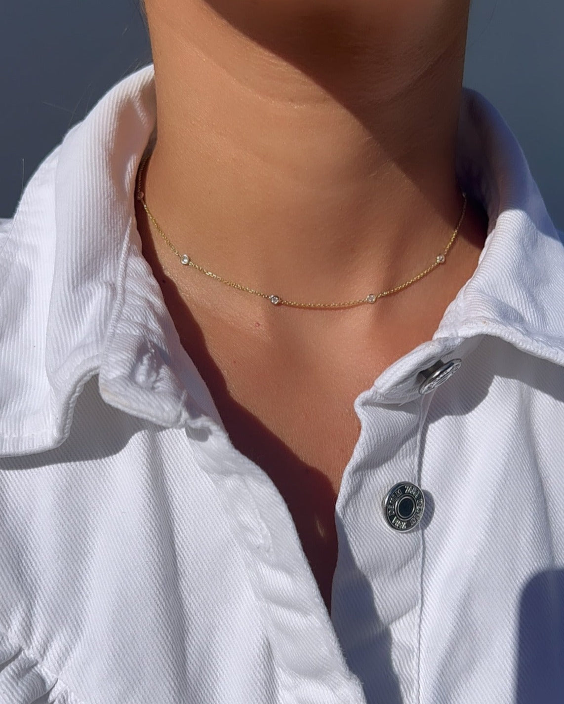 Love it so much you never have to take it off! Our new Diamonds by the Inch necklace can be worn as a double-wrap bracelet OR a choker. Use the adjustable, sliding closure to choose your necklace and bracelet length.