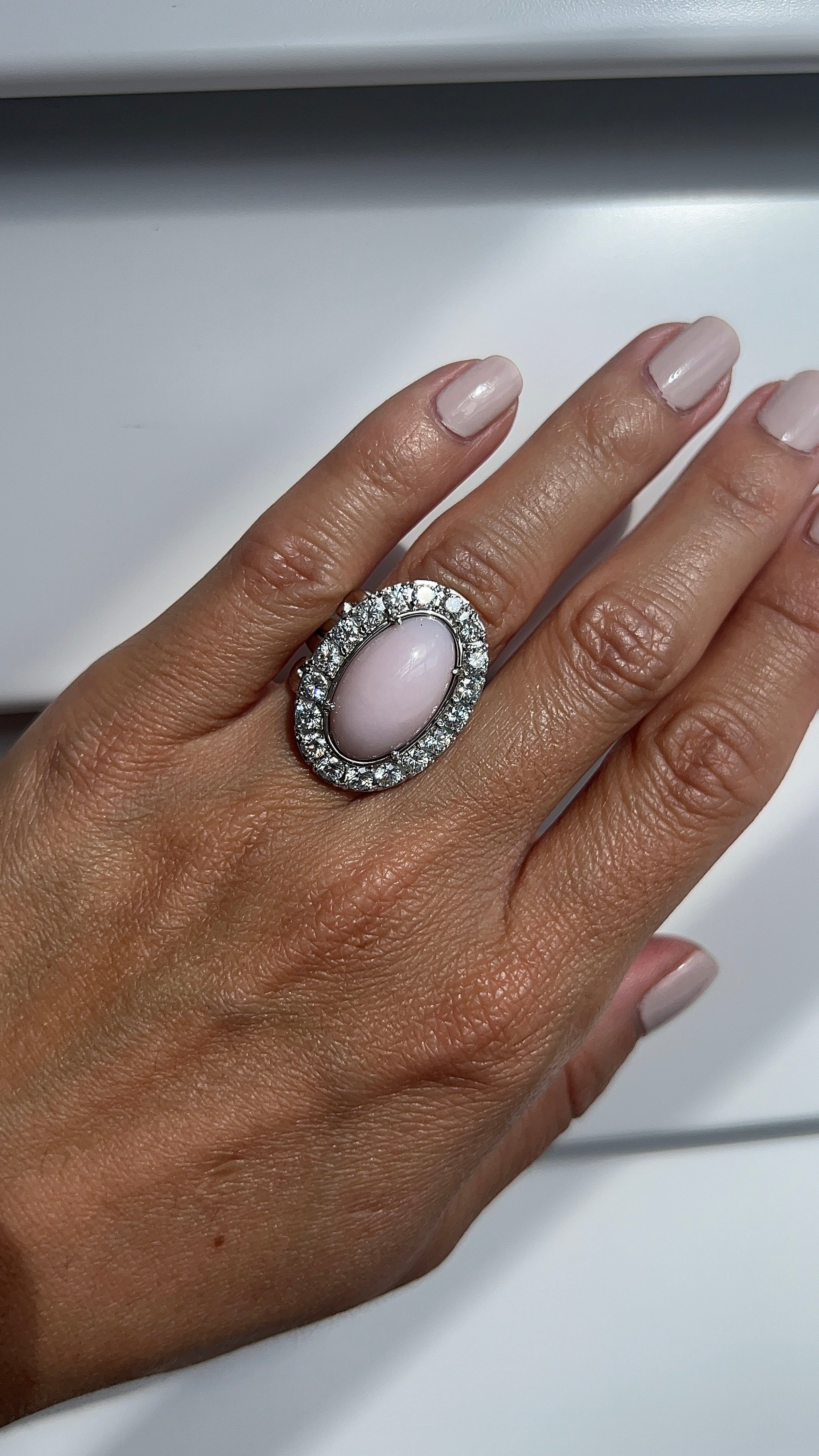 Make a bold statement with this stunning Vintage Coral and Diamond Cocktail Ring. Featuring a vibrant, richly hued coral centerpiece surrounded by a dazzling halo of brilliant-cut diamonds, this exquisite piece exudes timeless elegance and sophistication. Crafted in luxurious gold, it’s the perfect heirloom-worthy addition to any fine jewelry collection.