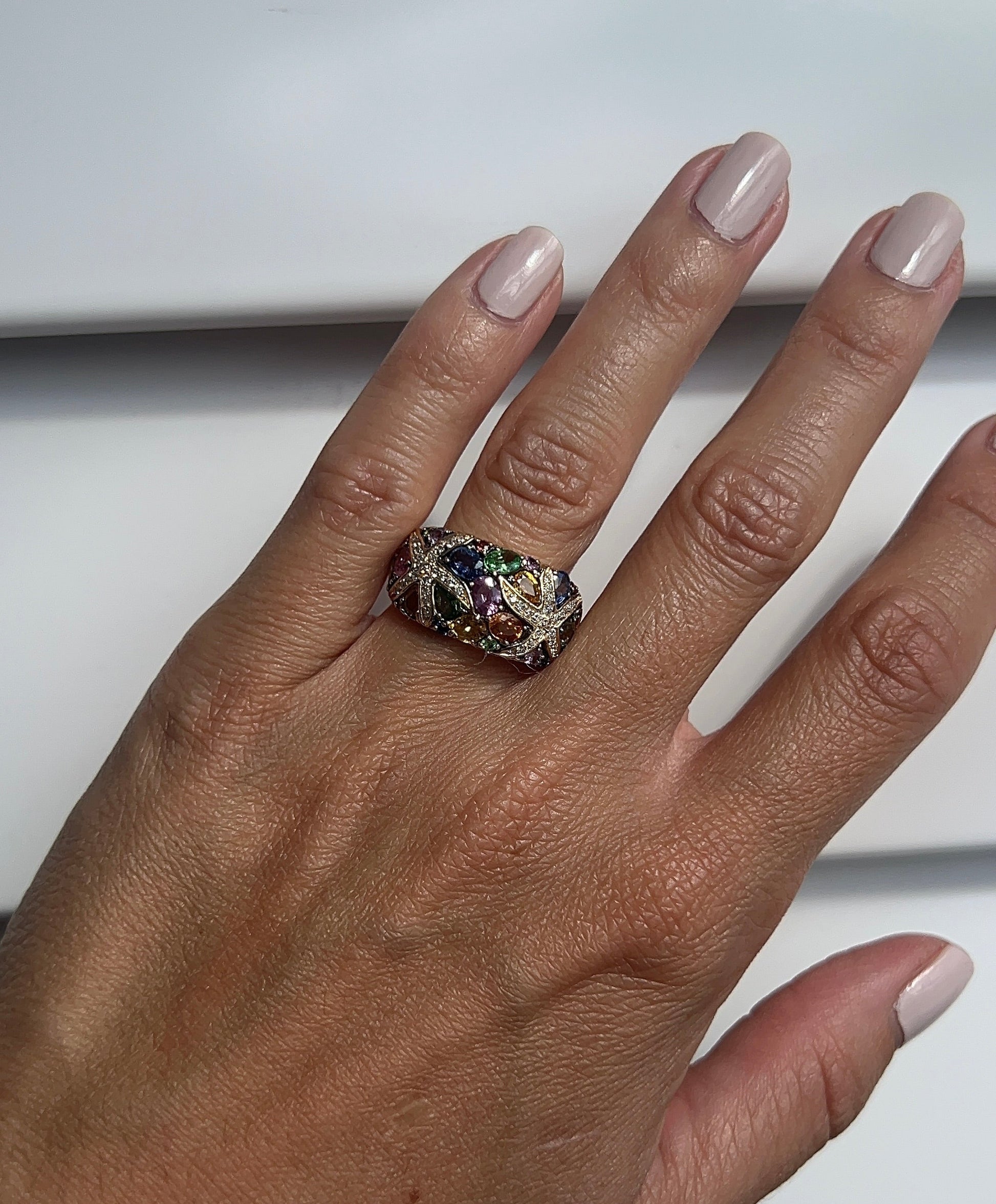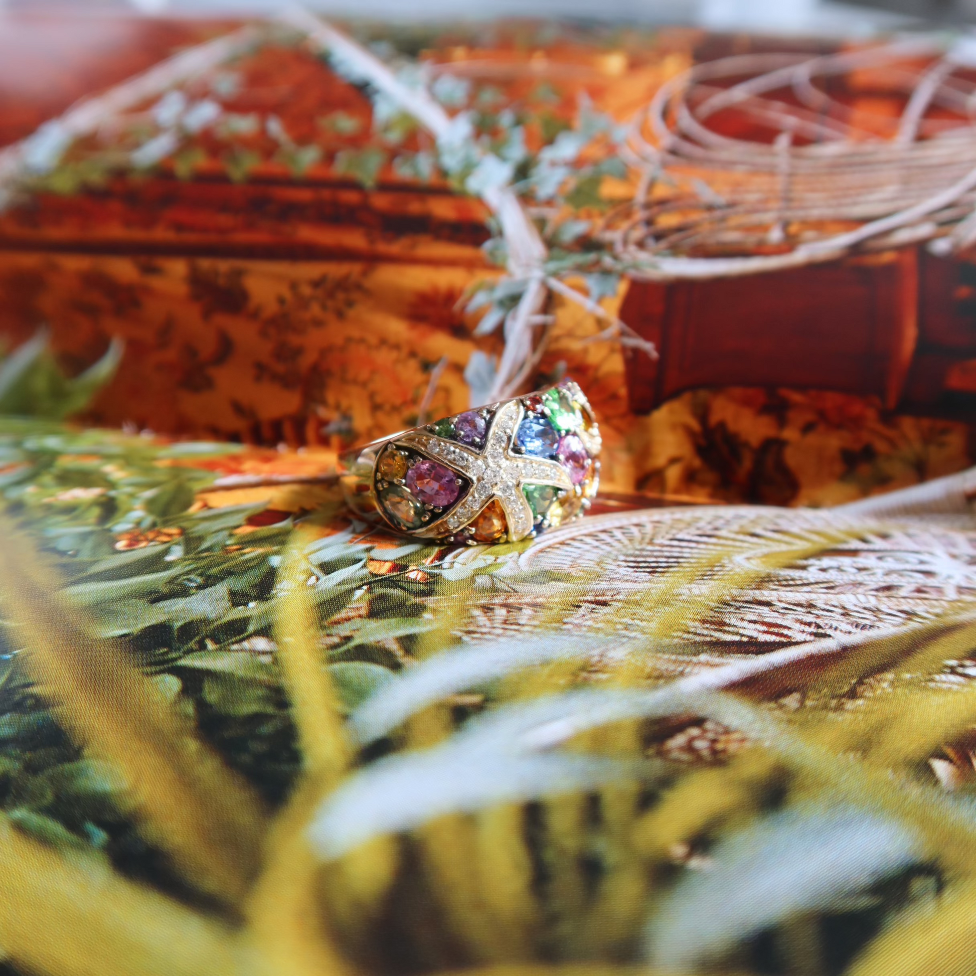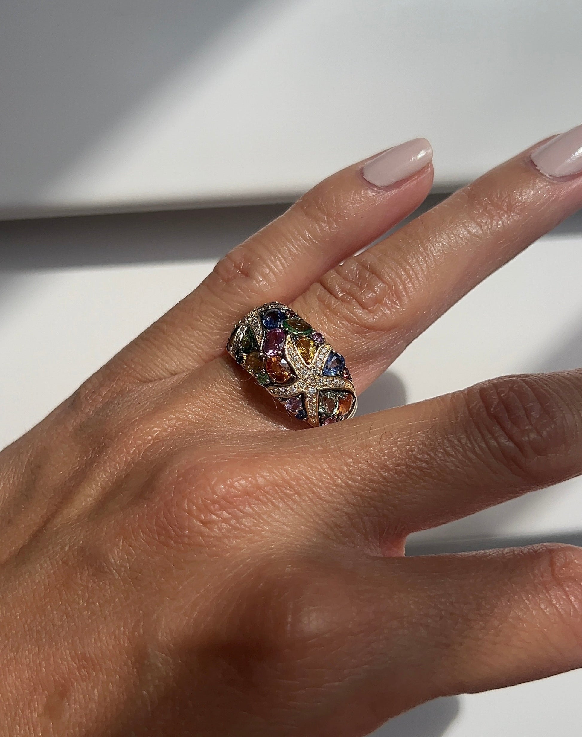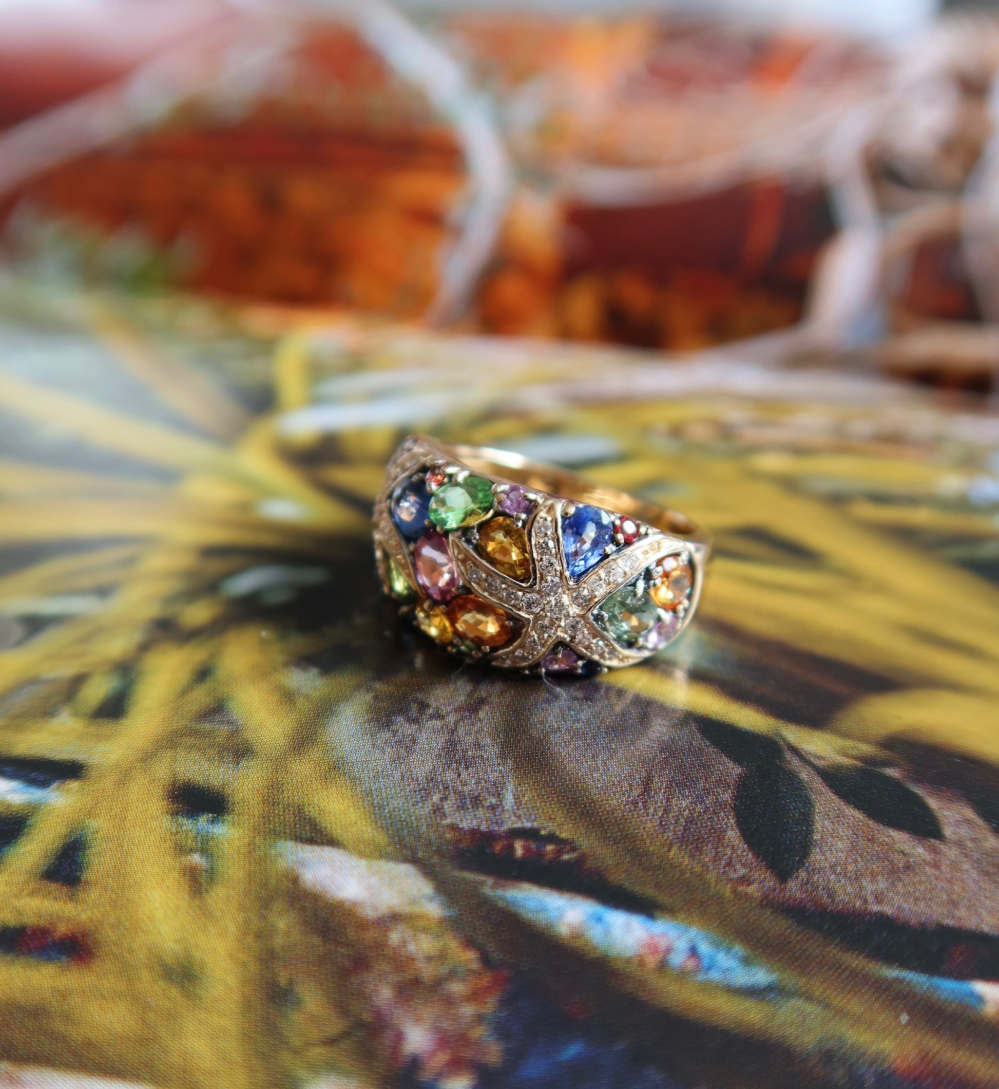 Vintage Rainbow Gemstone Starfish Cocktail Ring