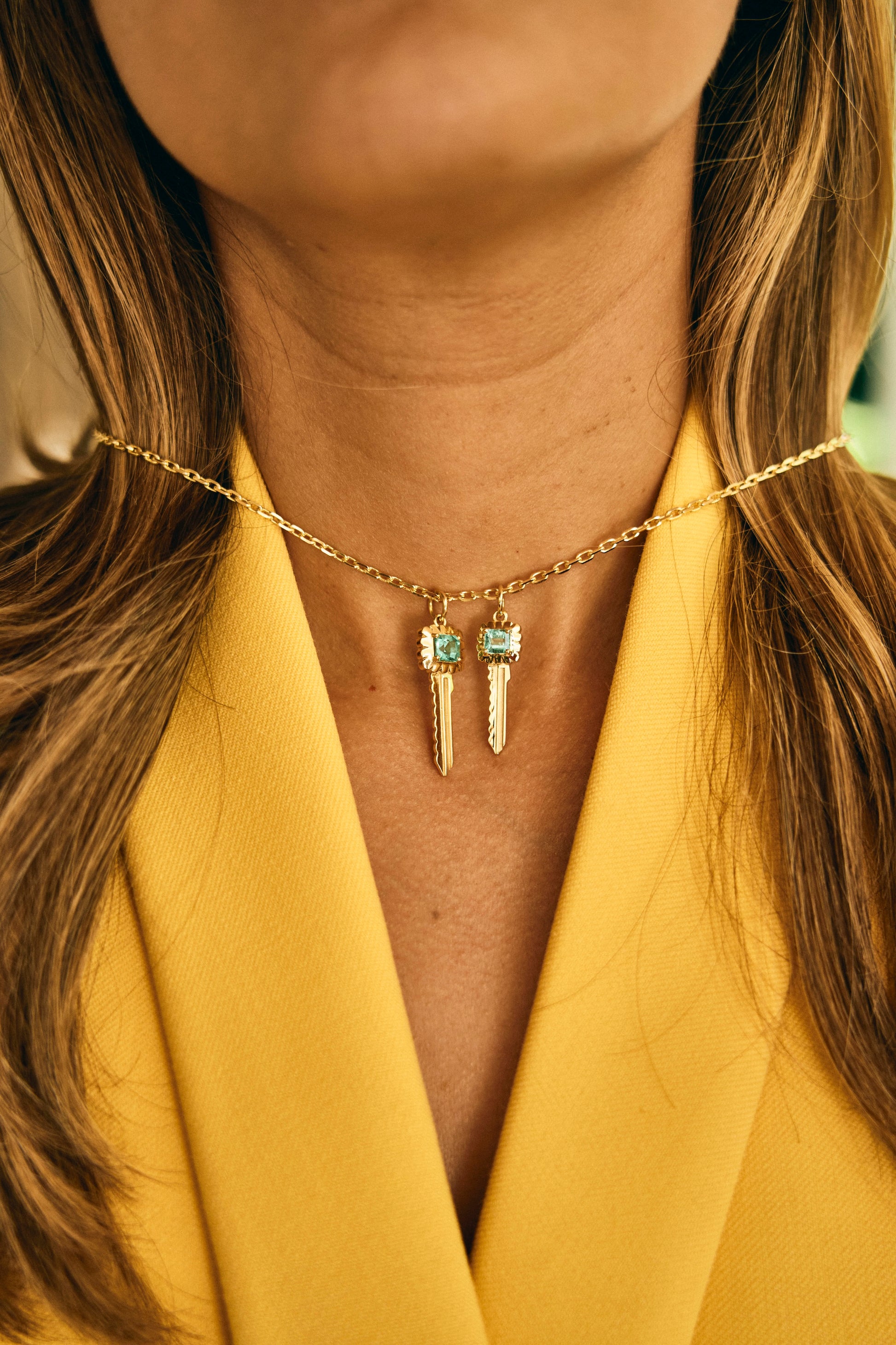 At the heart of this pendant lies a radiant oval-cut emerald, known for its lush green hue and rich symbolism. With its soft, elongated shape, the oval cut evokes harmony, continuity, and emotional depth — a perfect complement to the key’s meaning of unlocking what matters most.
