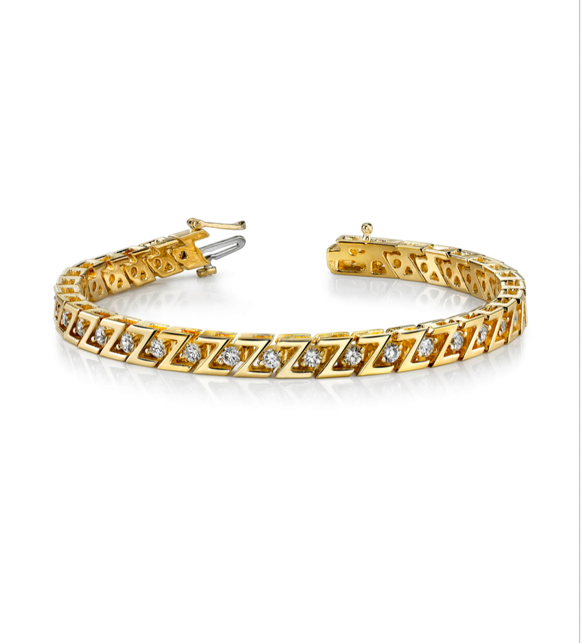 Introducing the "Z' Tennis Bracelet! Sparkling white diamonds are linked together by Z-Links in 14k gold. Each diamond is meticulously prong-set, with total diamond weight of 2.35cts.